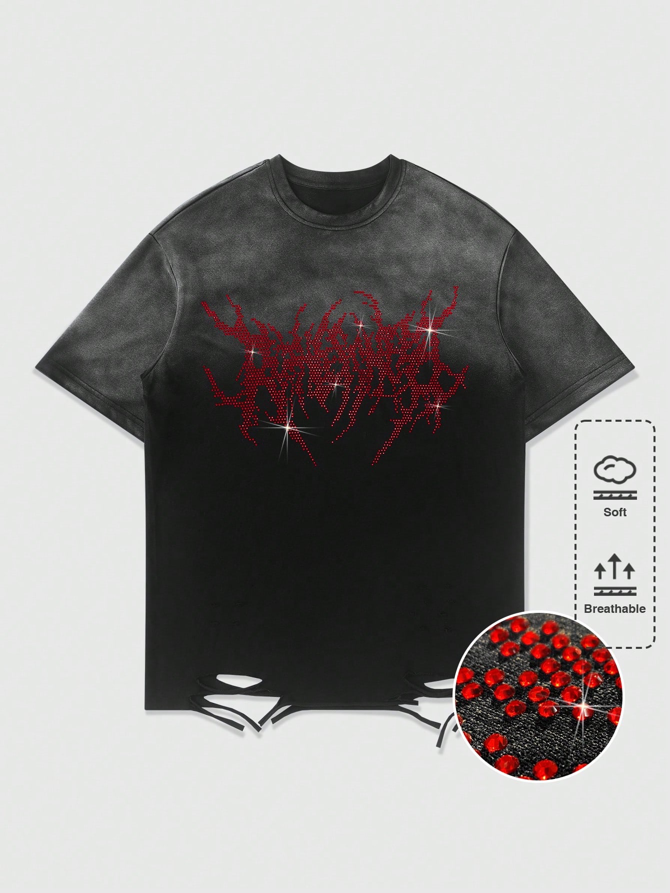 Street Life Men's Goth Rhinestone Decor Ombre Round Neck Casual Short Sleeve T-Shirt