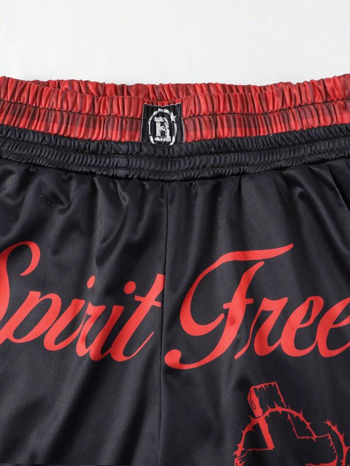 Street Life Men's Gothic Cross & Slogan Print Drawstring Waist Shorts, Halloween