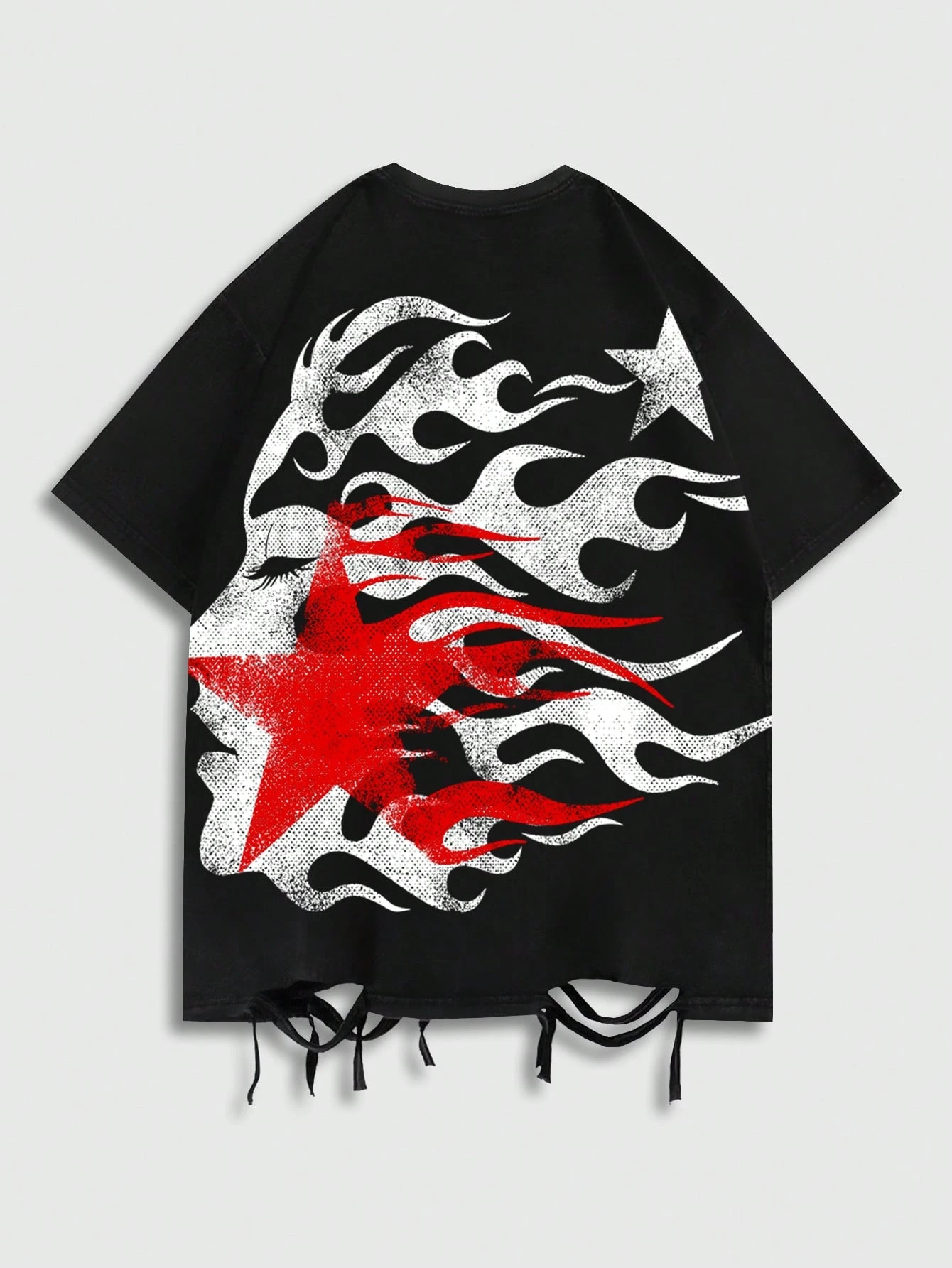 Street Life Men's Gothic Print Short Sleeve T-Shirt, Suitable For Everyday Wear, Spring/Summer