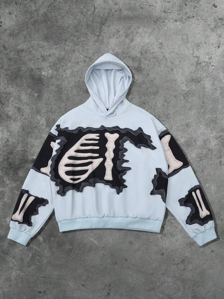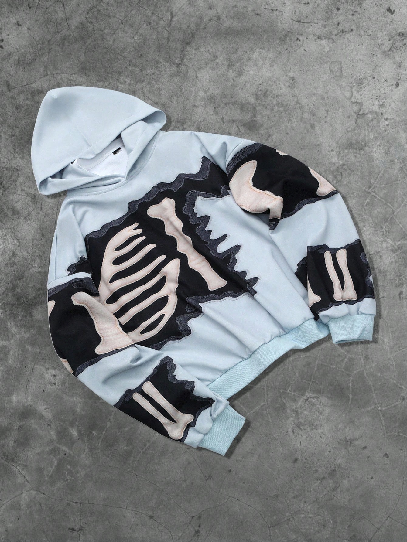 Street Life Men's Gothic Skeleton Print Hoodie Sweatshirt, Suitable For Autumn/Winter