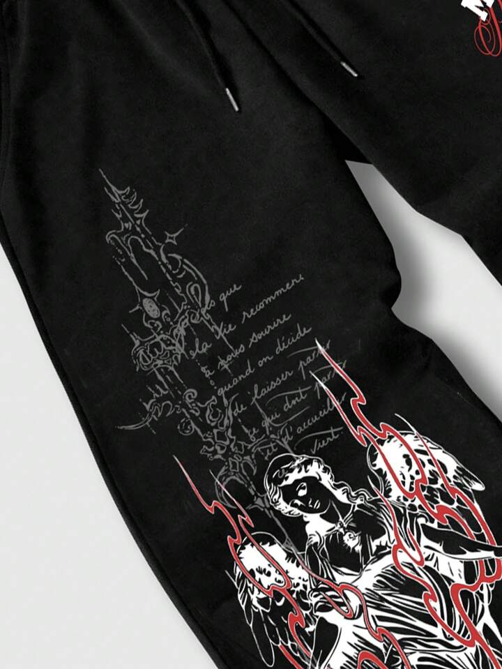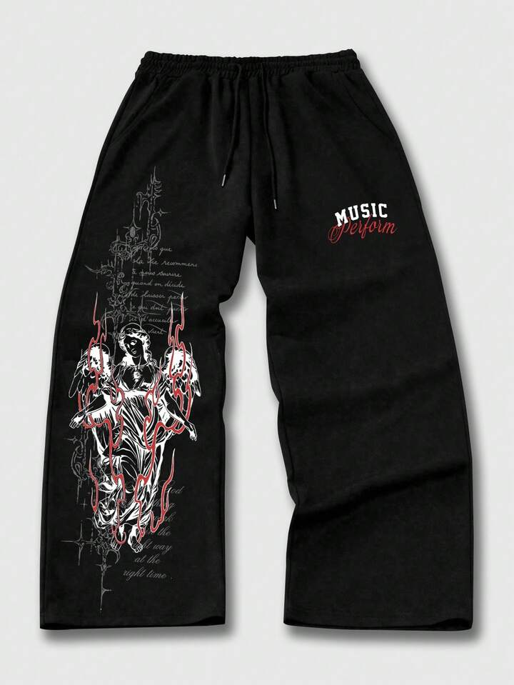 Street Life Men's Gothic Street Style Letter Print Drawstring Waist Wide Leg Sweatpants