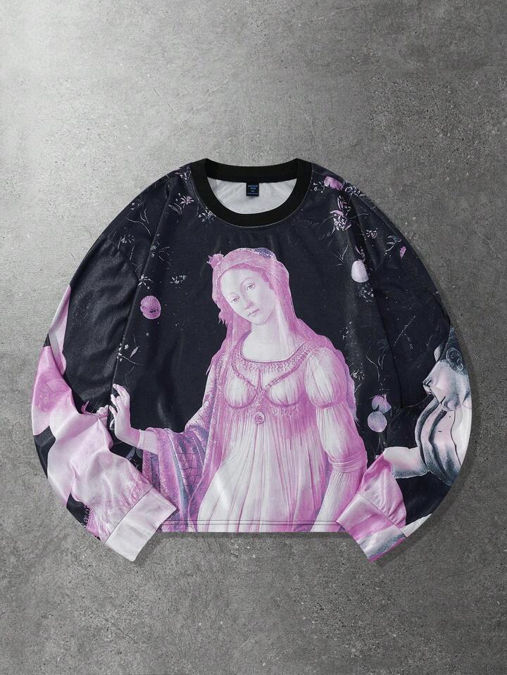 Street Life Men's Graphic Character Print Long Sleeve T-Shirt, Loose Fit