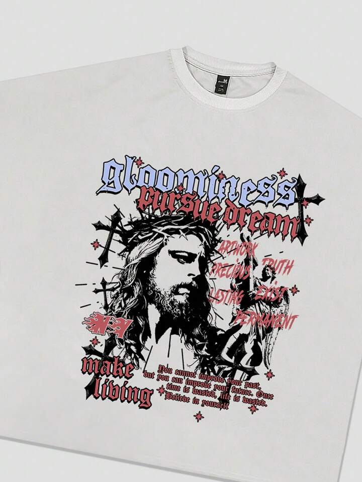 Men's Heavyweight Loose Short Print Short Sleeve T-Shirt