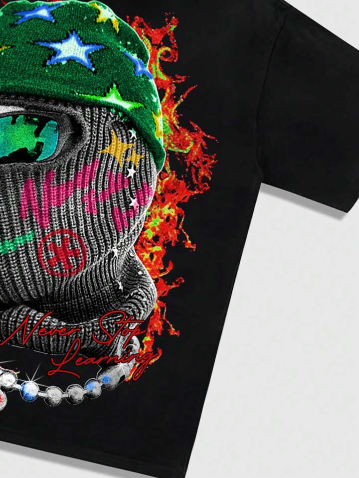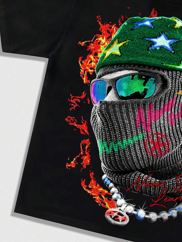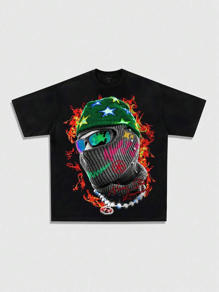 Street Life Men's Hip Hop Figure Print Short Sleeve T-Shirt, Suitable For Everyday Wear In Spring/Summer
