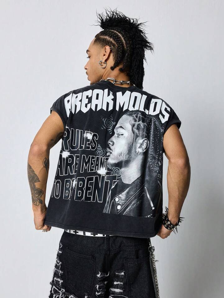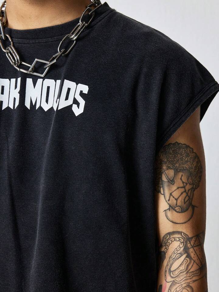 Street Life Men's Hip Hop Figure Washed Text Design Loose Muscle Tank