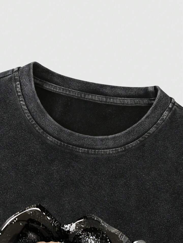 Street Life Men's Hip Hop High Street Retro Distressed Crewneck T-Shirt, Suitable For Spring/Summer