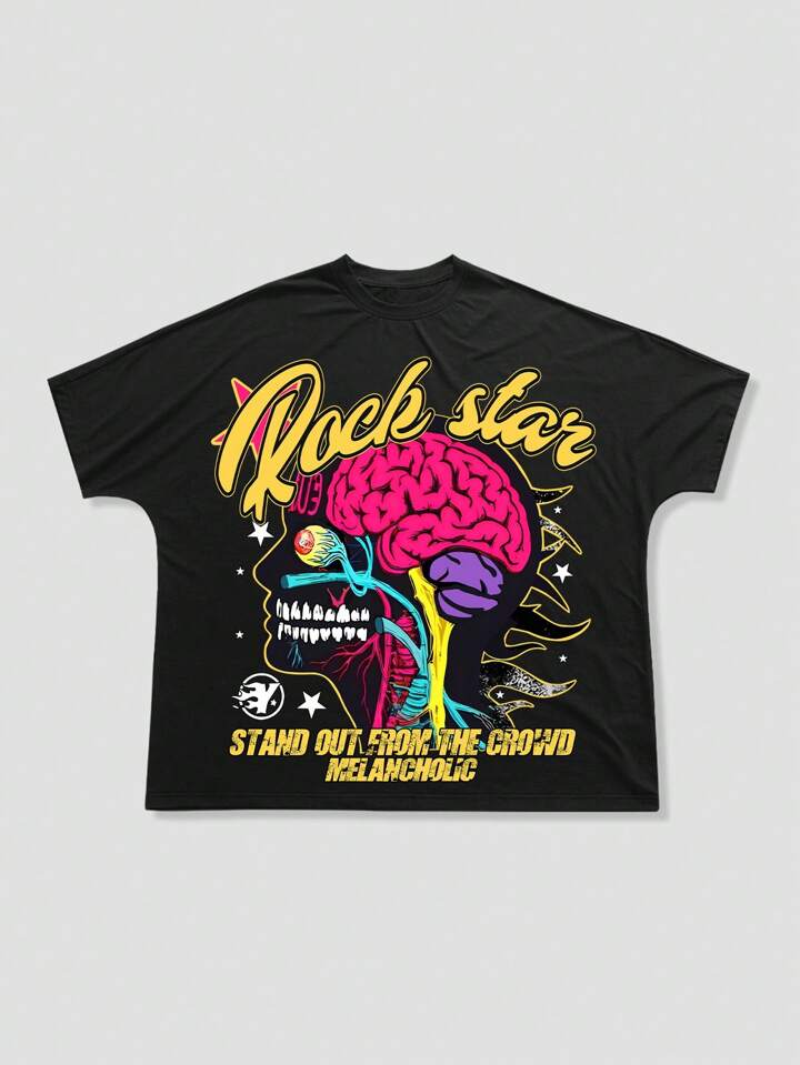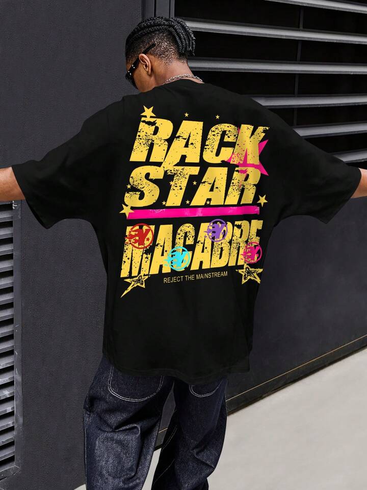 Street Life Men's Hip Hop Letter & Cartoon Graphic Round Neck Short Sleeve T-Shirt