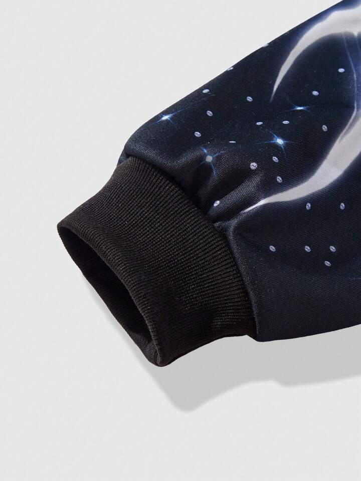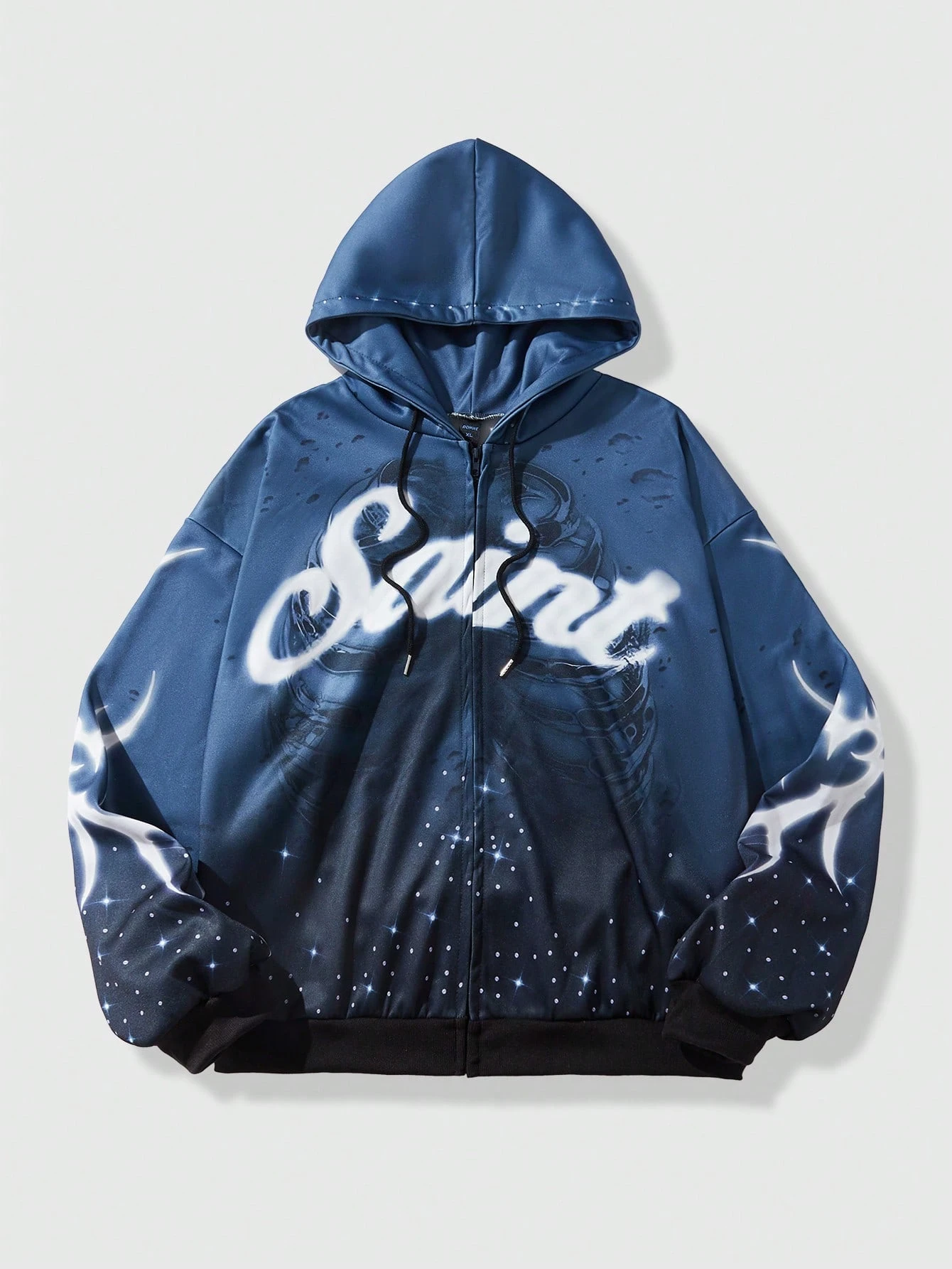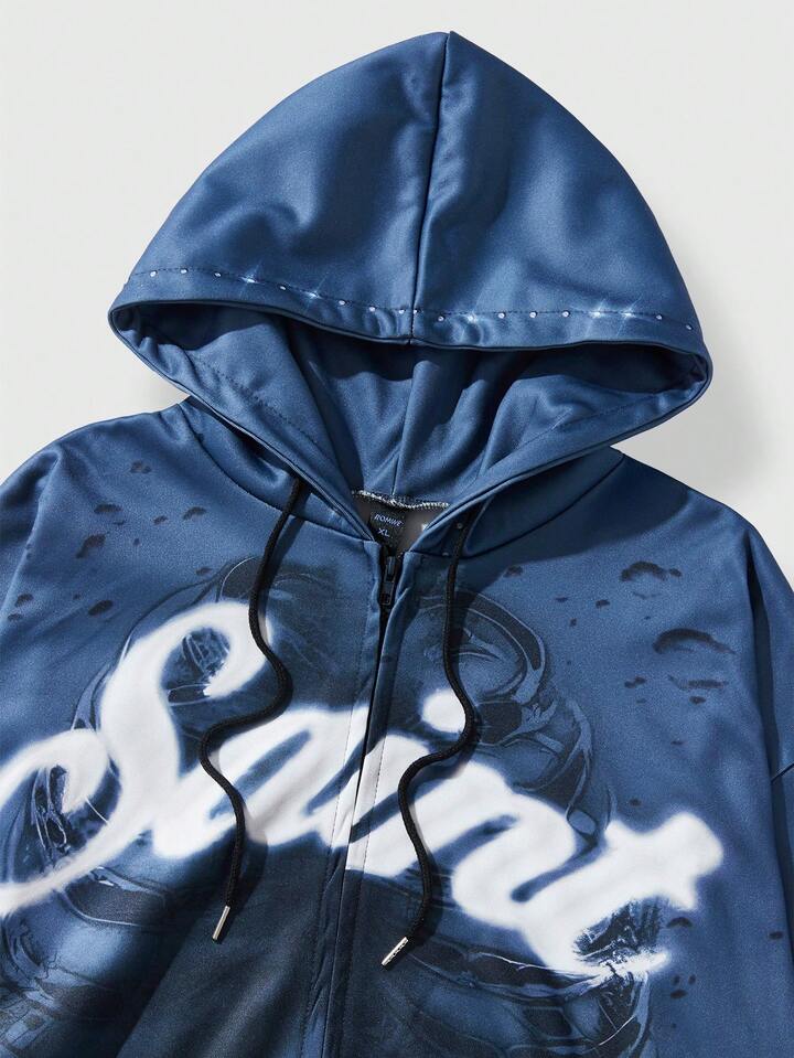 Street Life Men's Hooded Drawstring Drop Shoulder Long Sleeve Zip-Up Casual Street Graphic Print Hoodie Sweatshirt