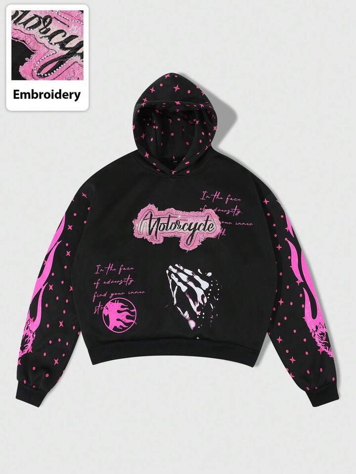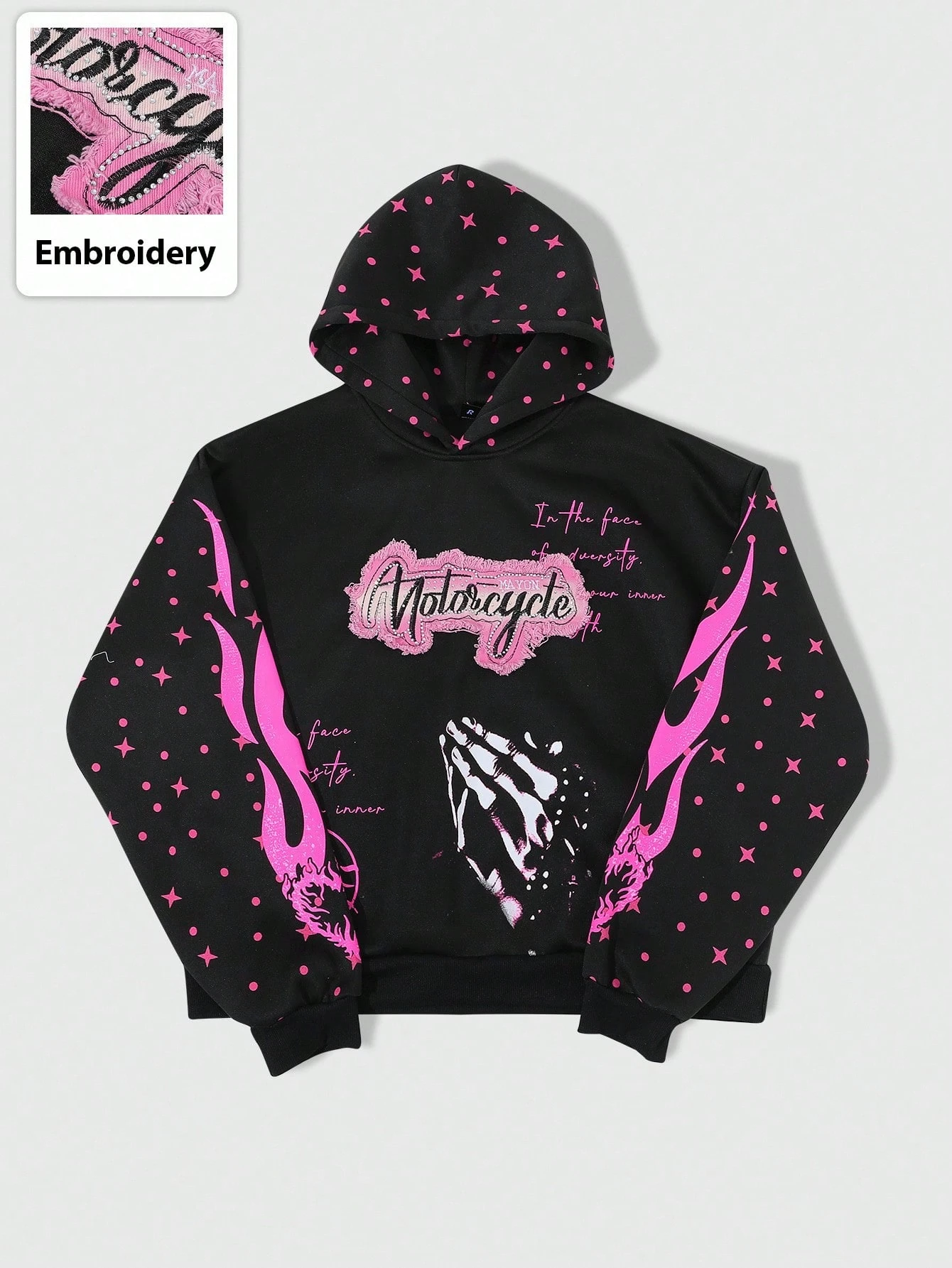Street Life Men's Hooded Sweatshirt, Thermal Lined, Embroidered Patch & English Letter Print, Autumn/Winter