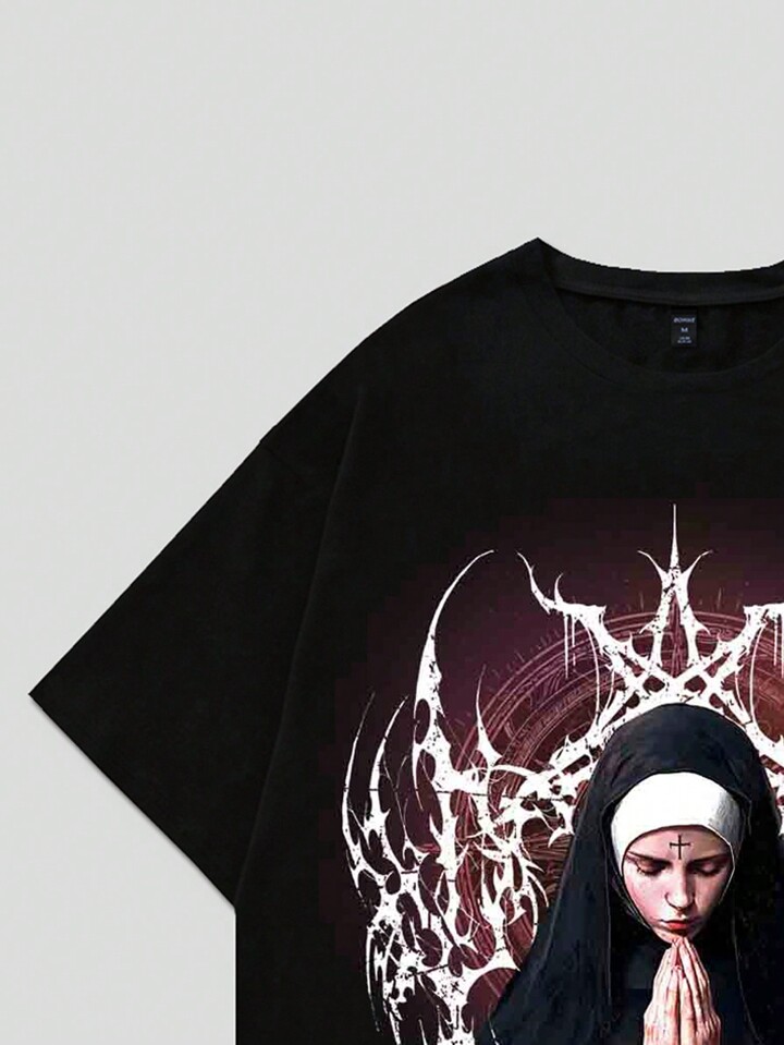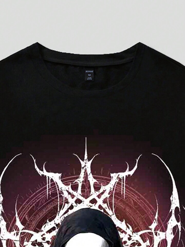 Street Life Men's Illusion Face Print Round Neck Short Sleeve T-Shirt, Suitable For Everyday Wear In Spring/Summer