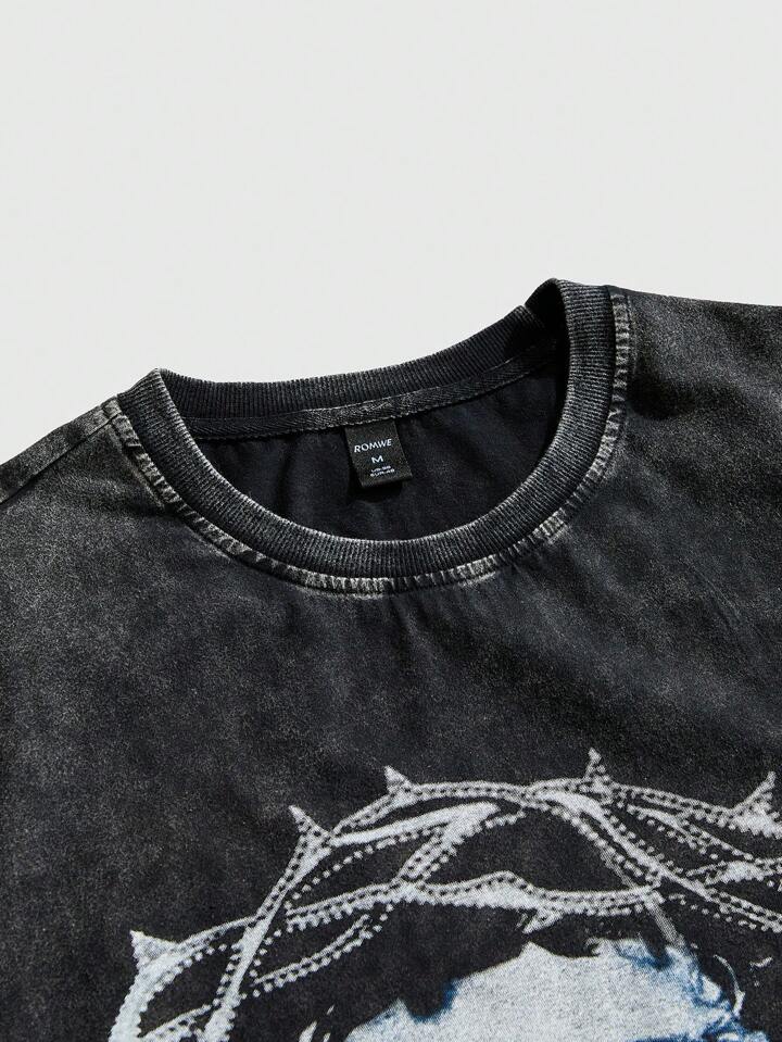Street Life Men's Jesus Printed Vintage Distressed Round Neck Short Sleeve T-Shirt
