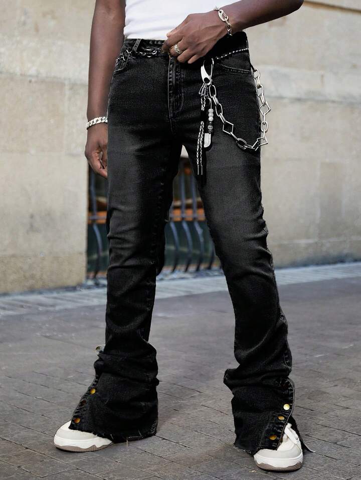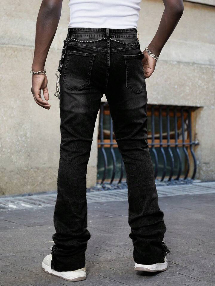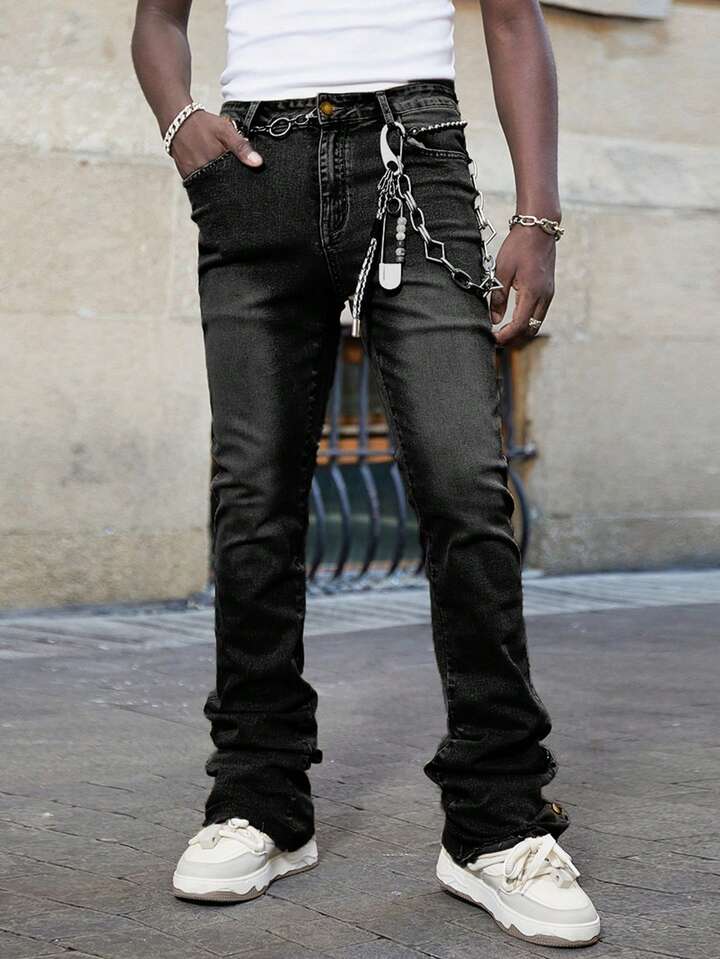 Street Life Men's Layered Pocket Pleated Casual Flared Washed Denim Jeans