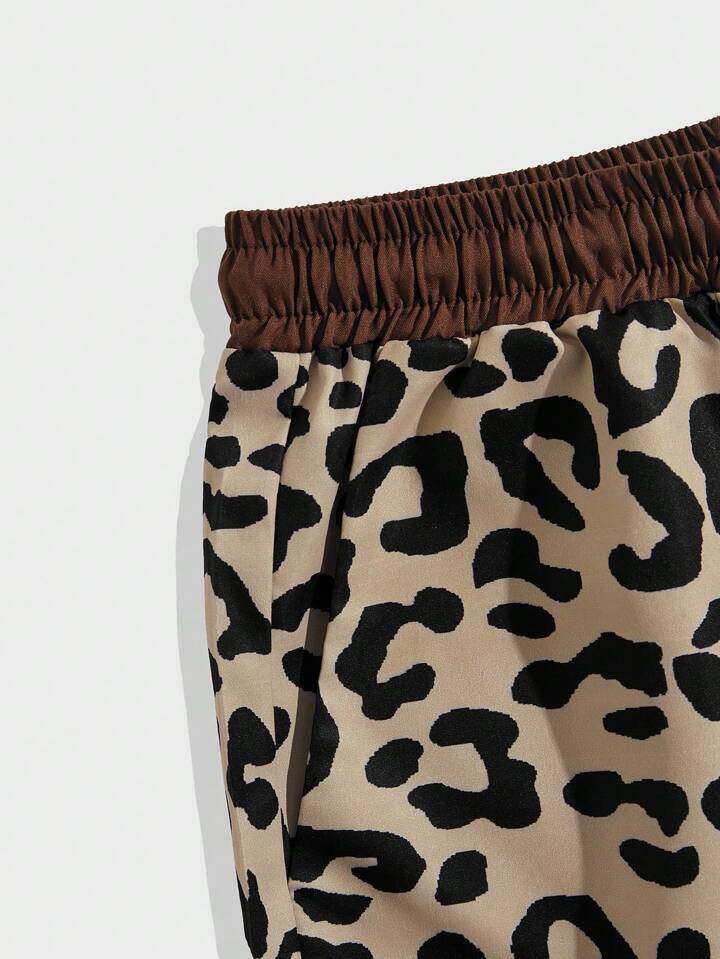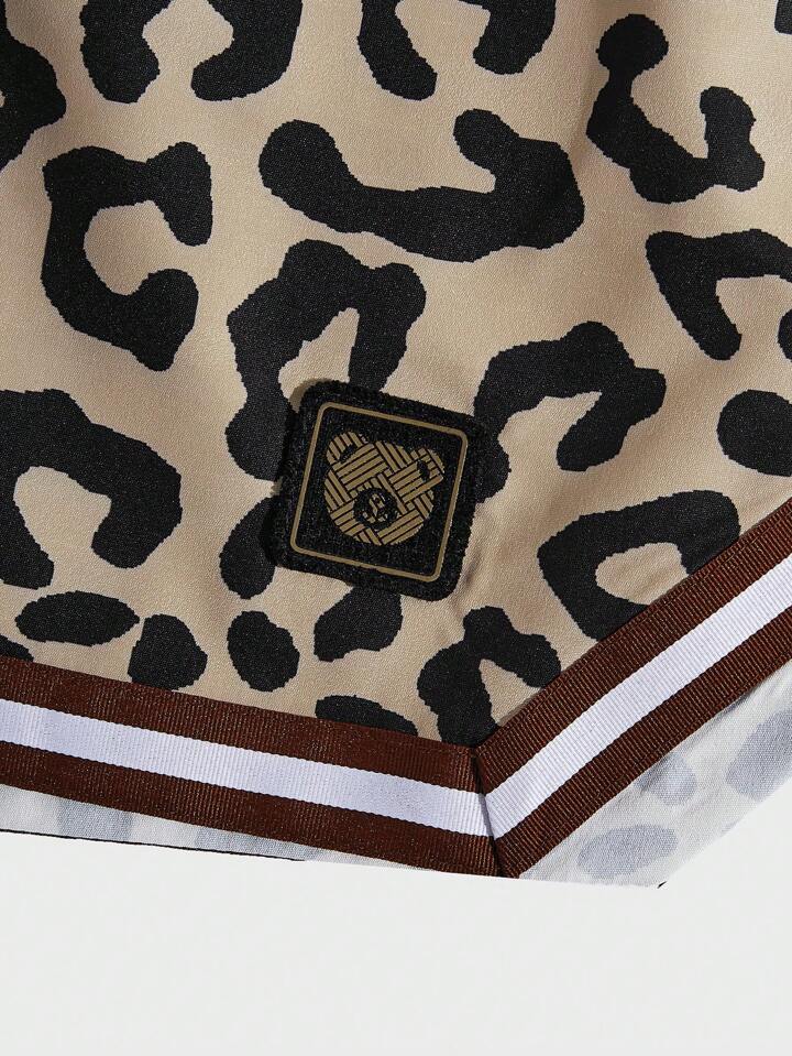 Street Life Men's Leopard Print Contrast Stripe Drawstring Waist Shorts, School