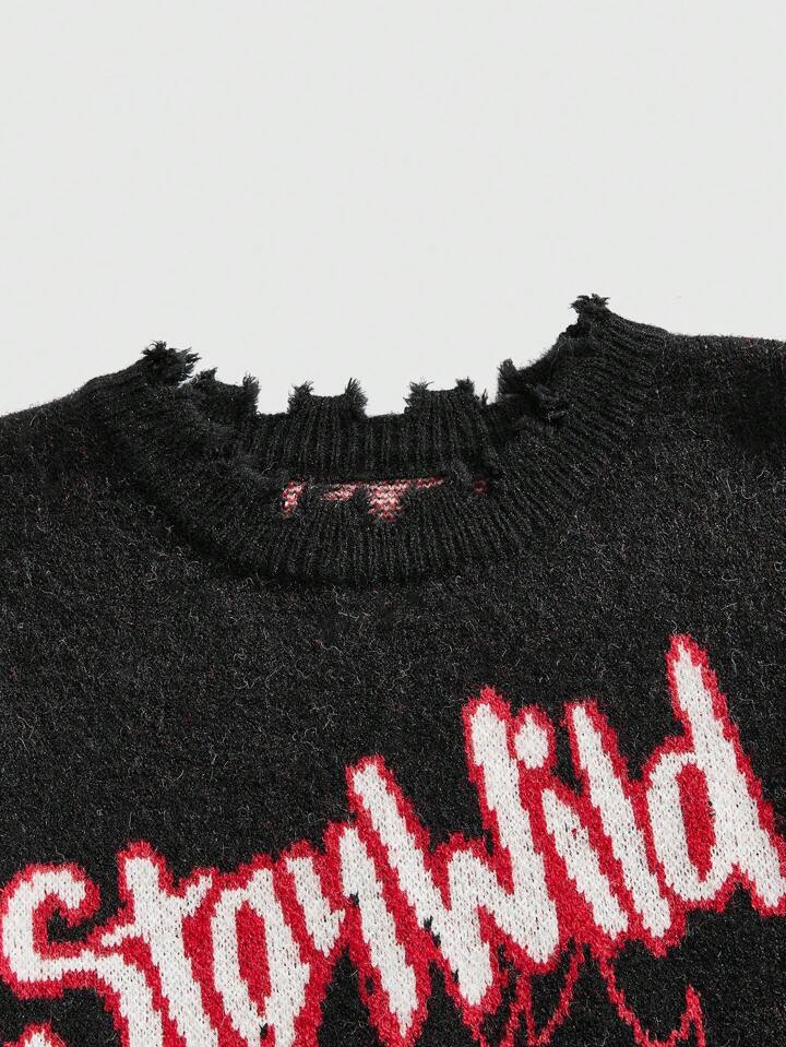 Street Life Men's Letter & Cartoon Print Casual Long Sleeve Pullover Sweater