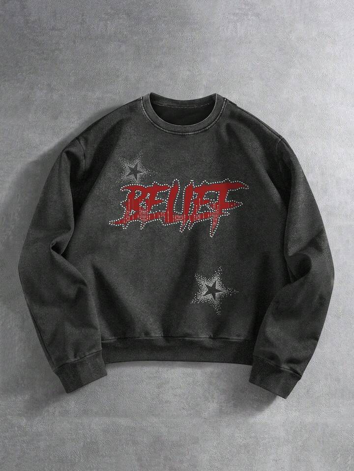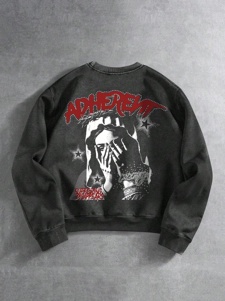 Street Life Men's Letter & Portrait Graphic Crew Neck Long Sleeve Pullover Sweatshirt