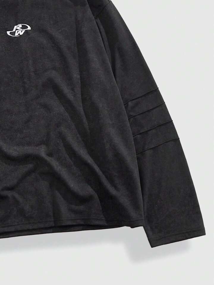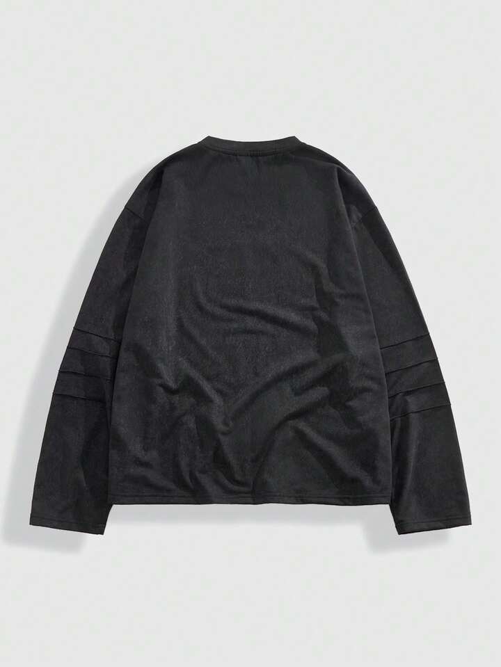 Street Life Men's Letter Print Casual Loose Fit Crew Neck Long Sleeve T-Shirt