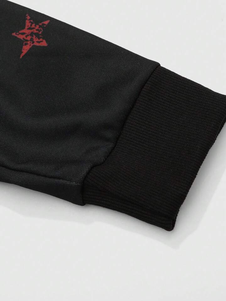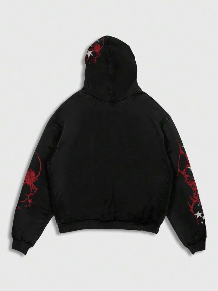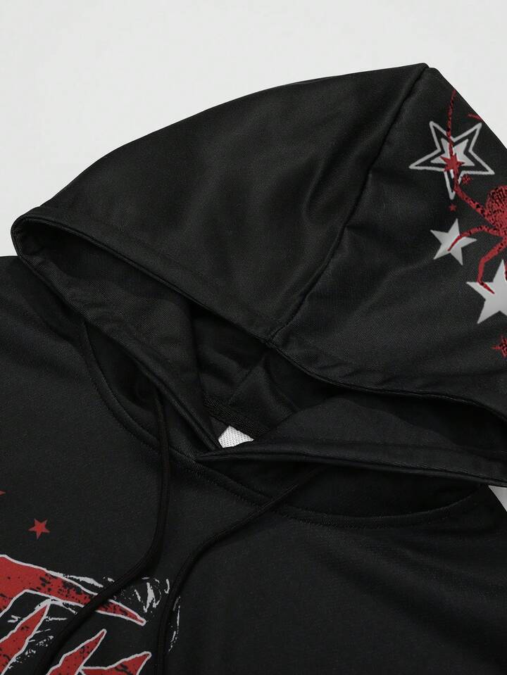 Street Life Men's Letter Print Fashionable Long Sleeve Hooded Pullover Sweatshirt