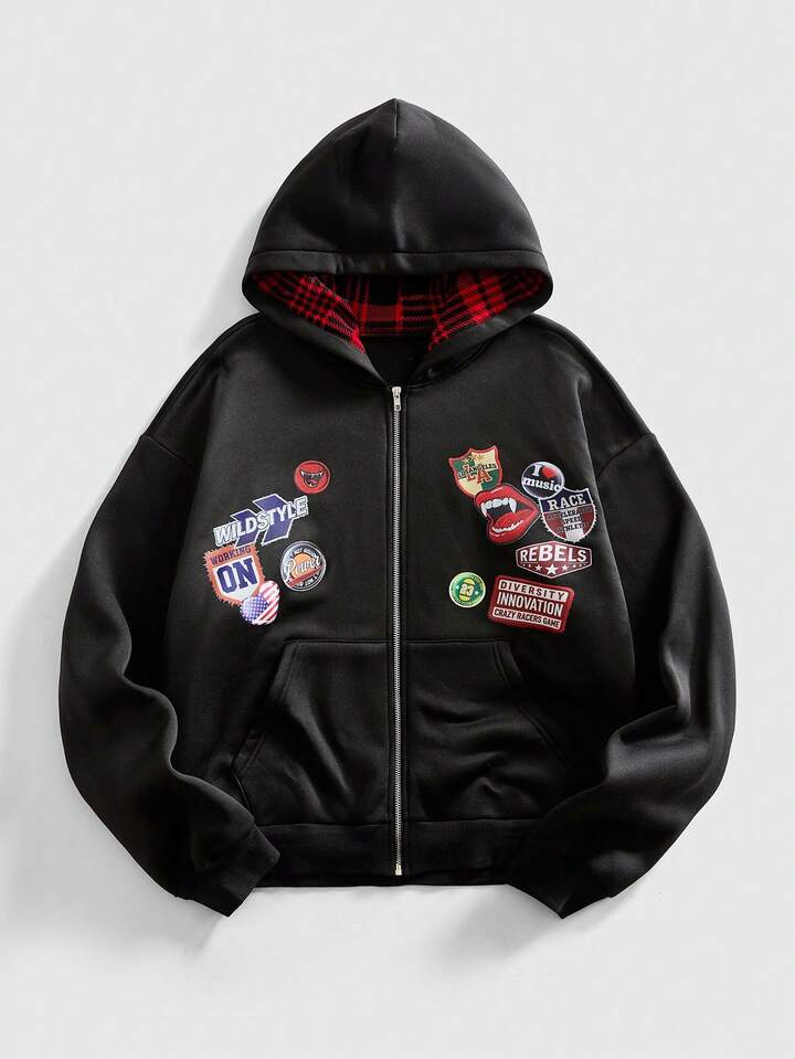 Street Life Men's Letter Print Long Sleeve Zip-Up Preppy Hoodie, Autumn/Winter