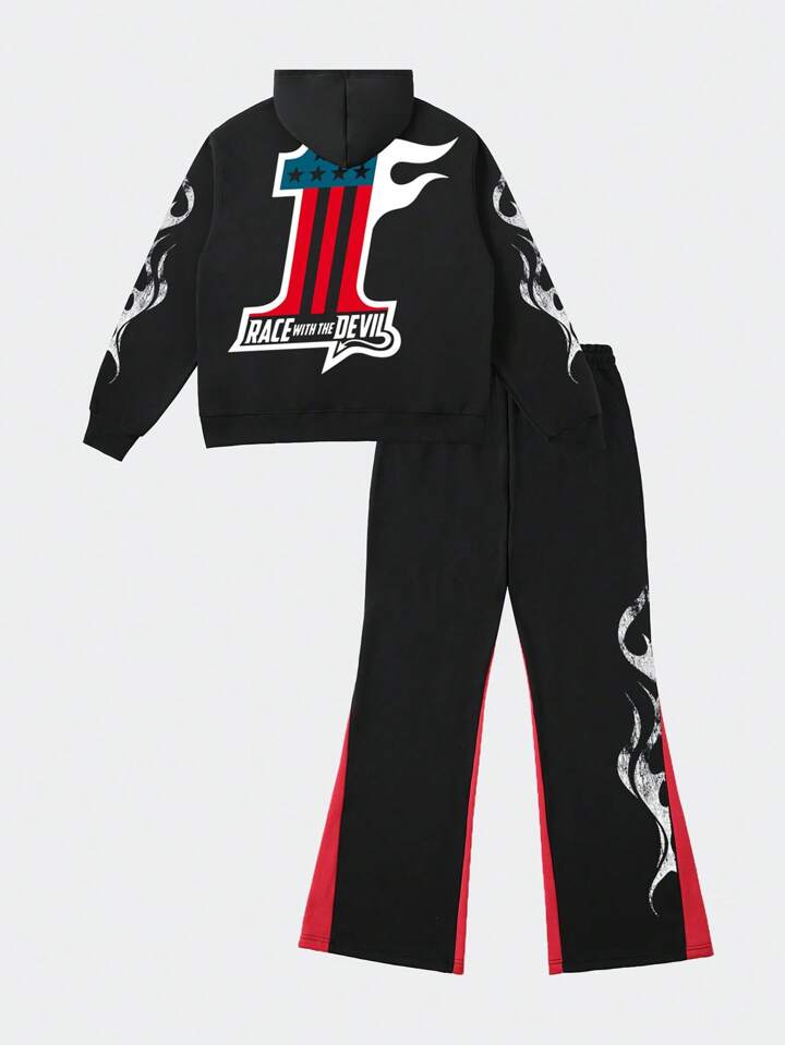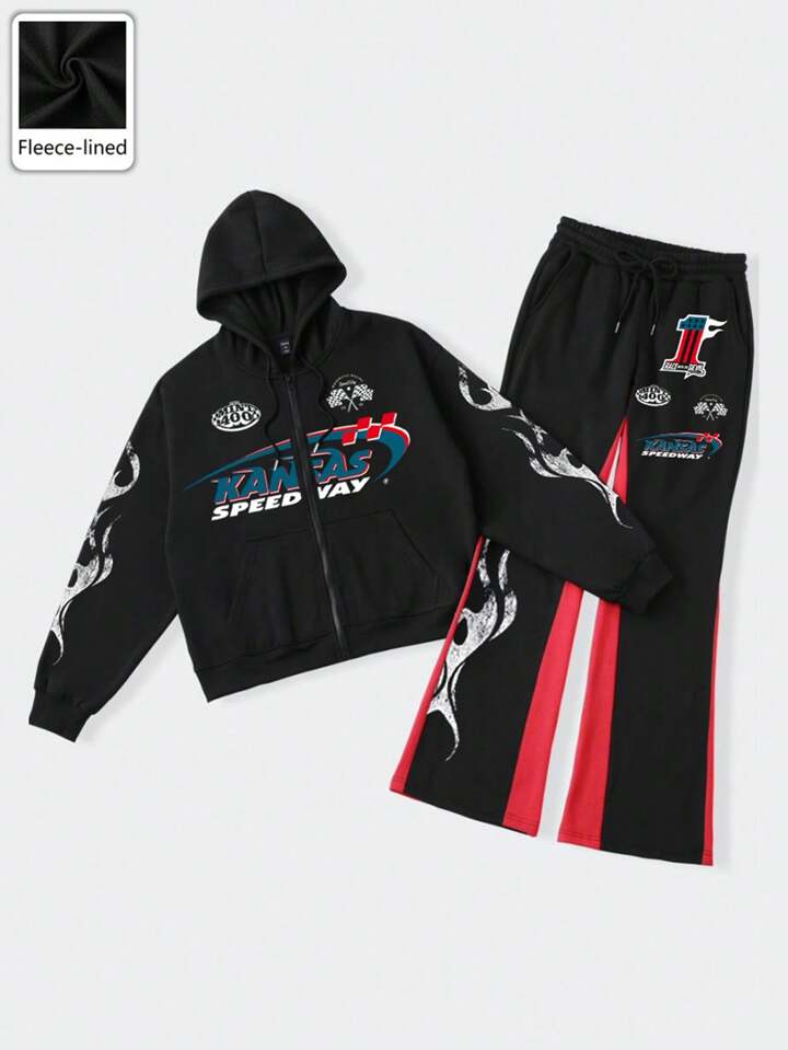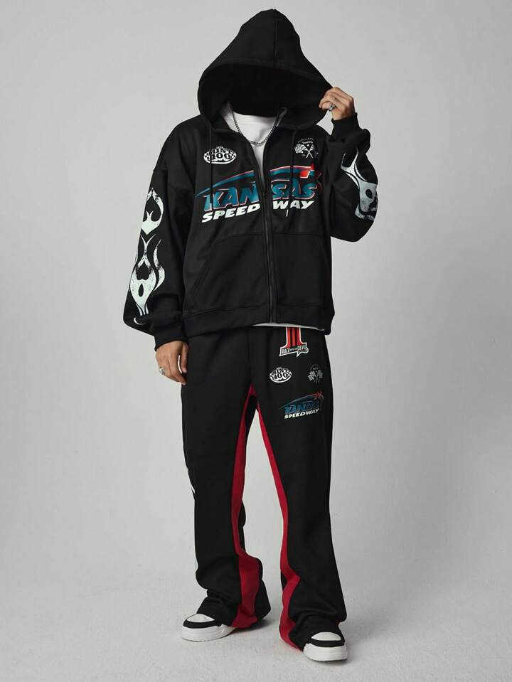 Street Life Men's Letter Print Zipper Hoodie And Sweatpants Set
