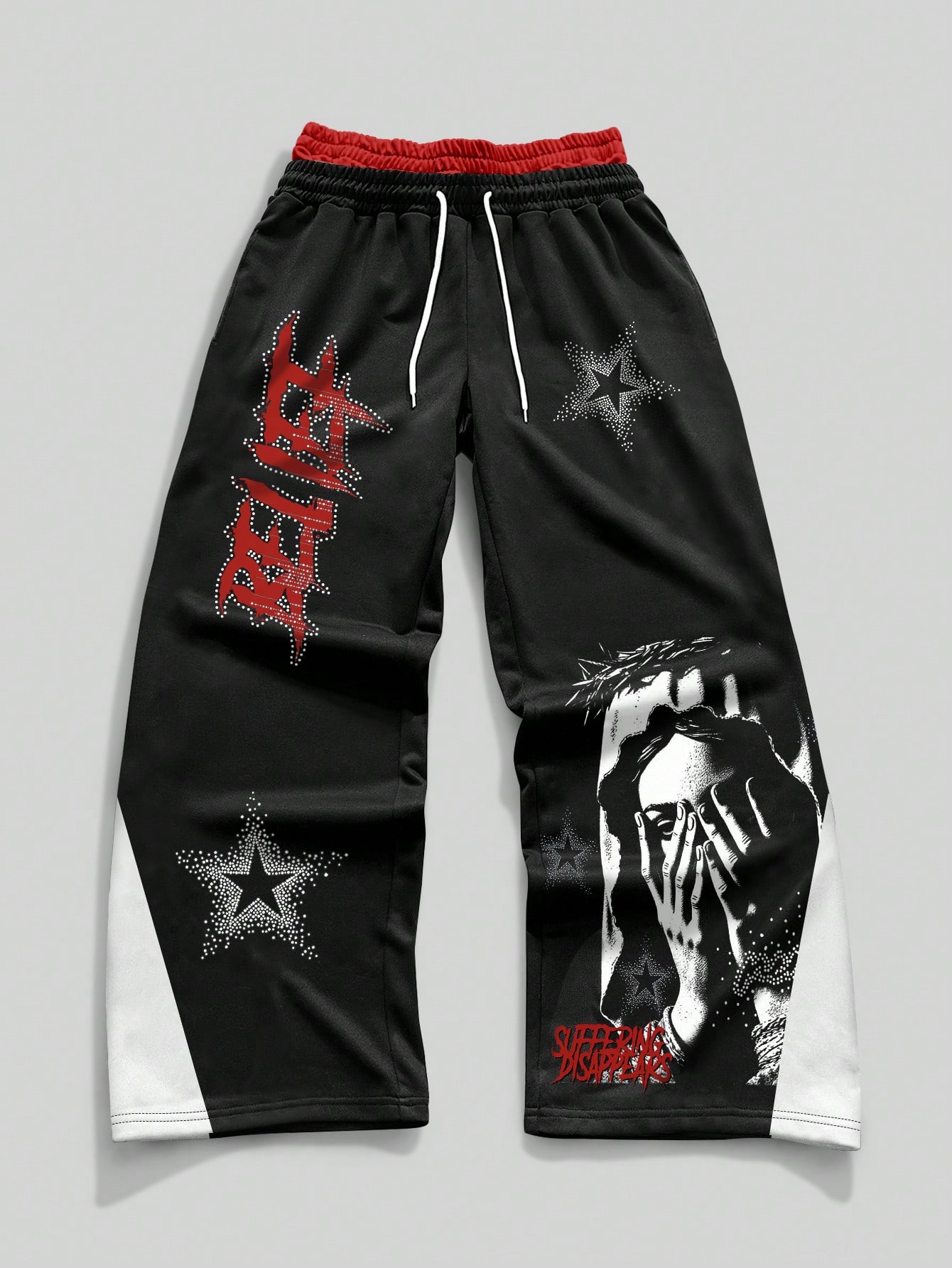 Street Life Men's Letter & Star Print Drawstring Waist Loose Fit Sweatpants