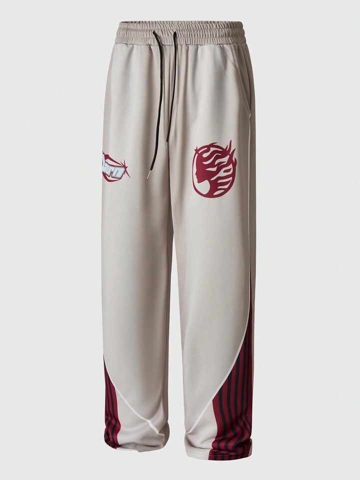 Street Life Men's Letter Striped Print Drawstring Waist Pocket Loose Casual Sweatpants