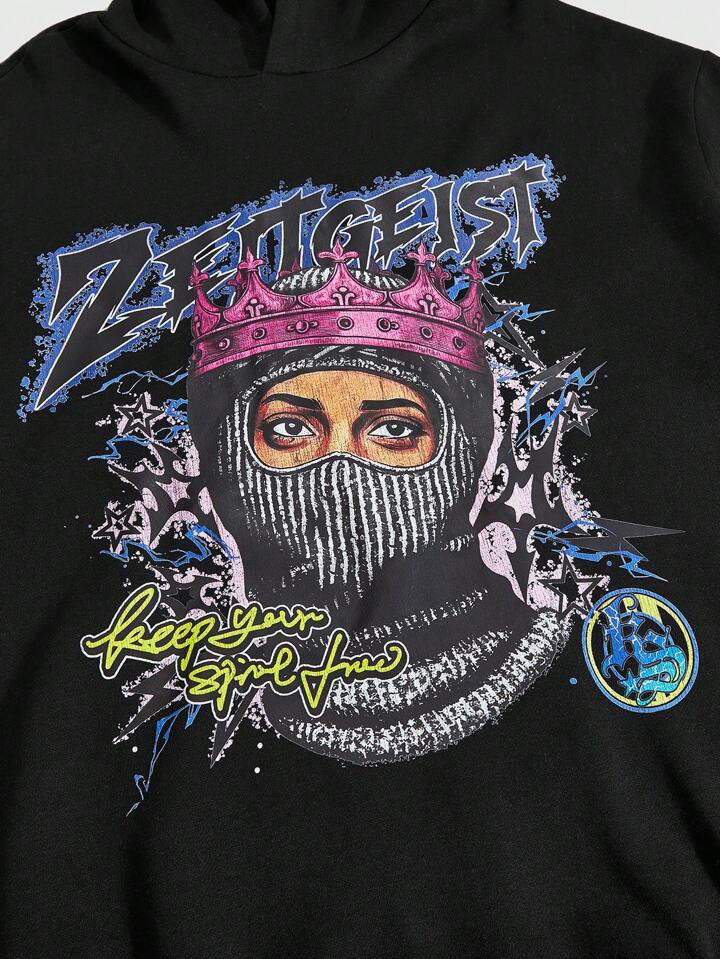Street Life Men's Loose Cropped Hooded Sweatshirt And Pants Tracksuit Set, Streetwear