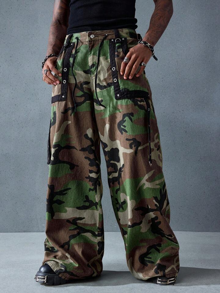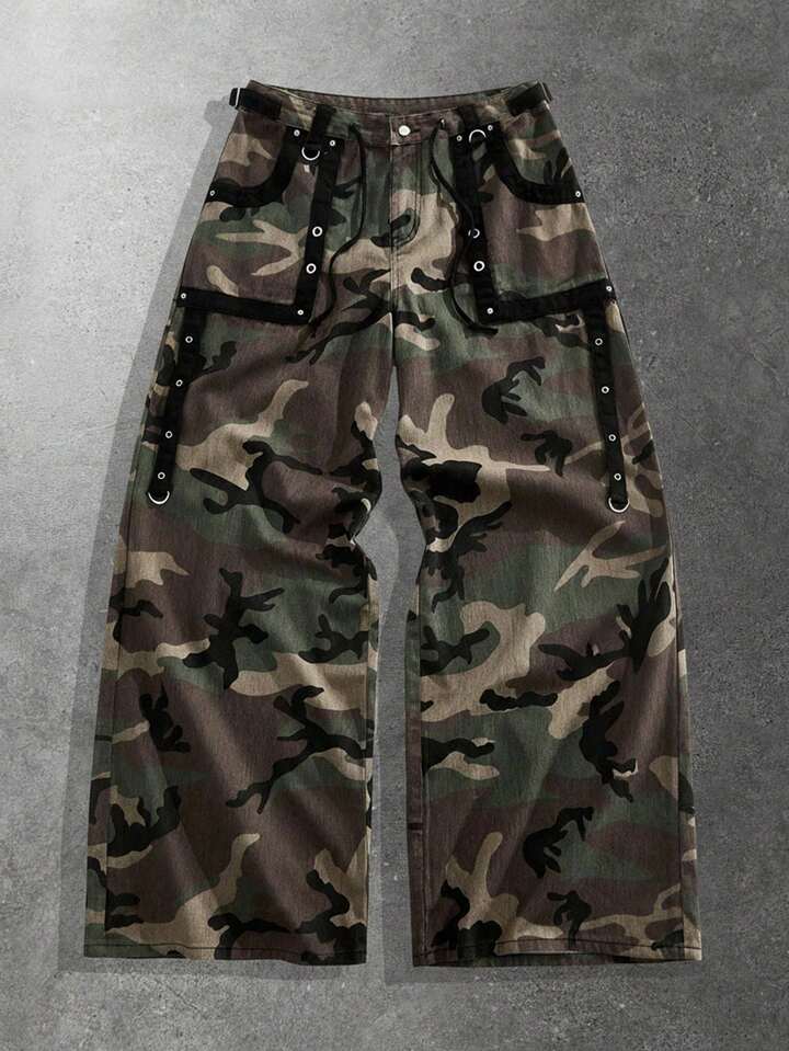 Street Life Men's Loose Fashionable Cargo Style Casual Straight Leg Camouflage Jeans