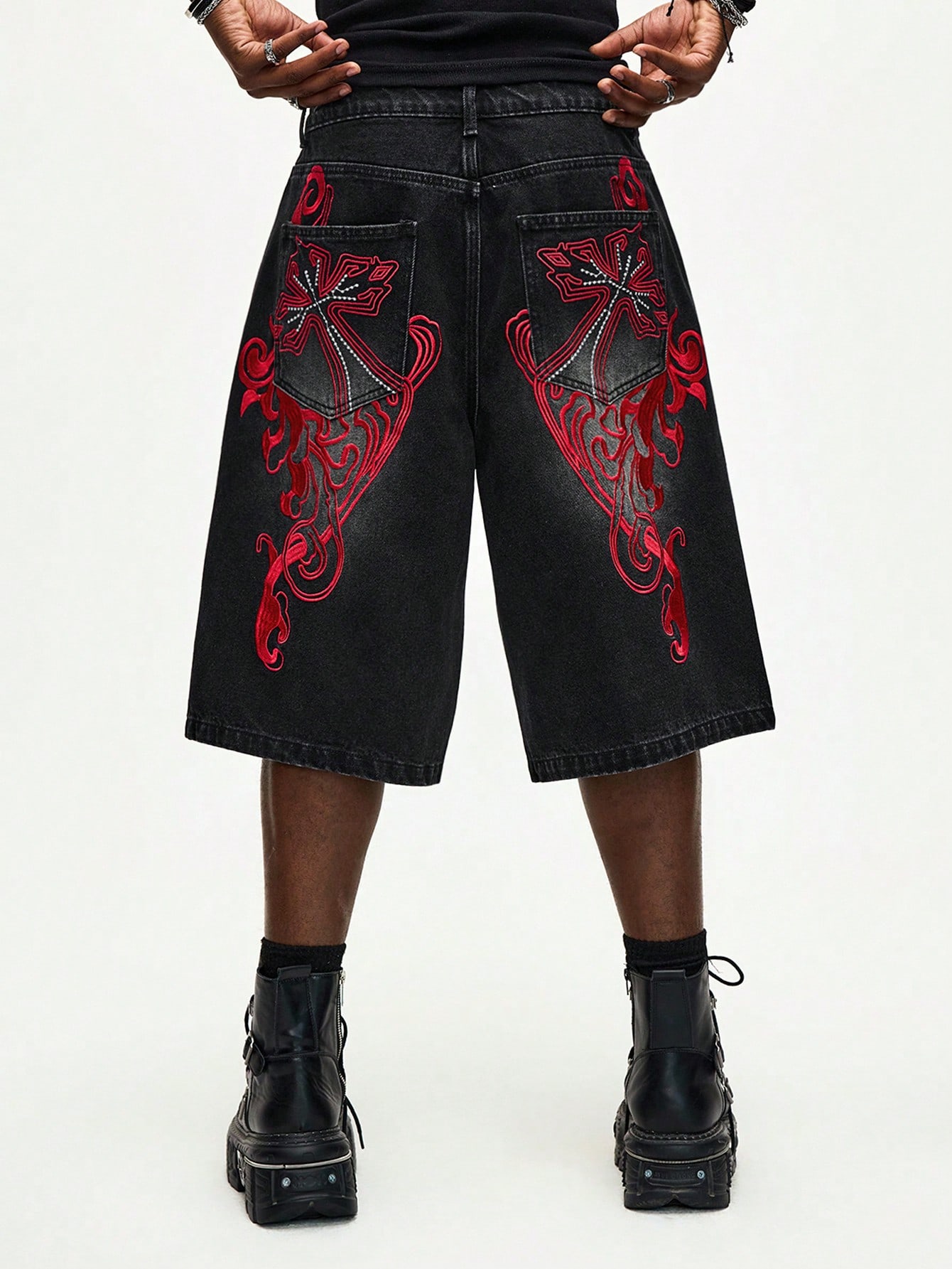 Street Life Men's Loose Fit Casual Pocketed Wide Leg Denim Shorts
