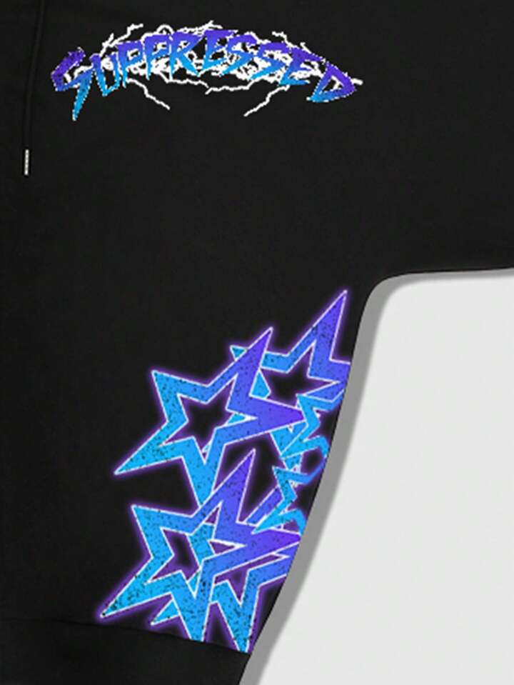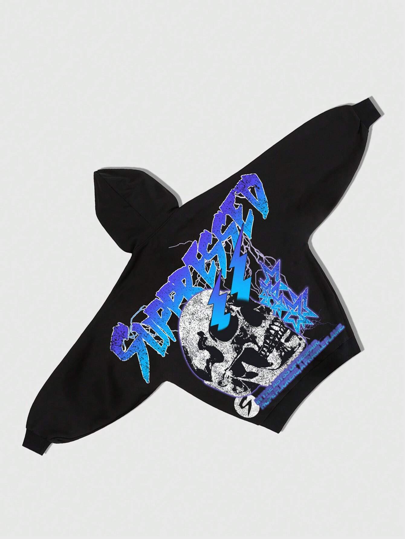 Street Life Men's Loose Letter & Skull Print Long Sleeve Sweatshirt Hoodie, Street Vintage Oversized Style
