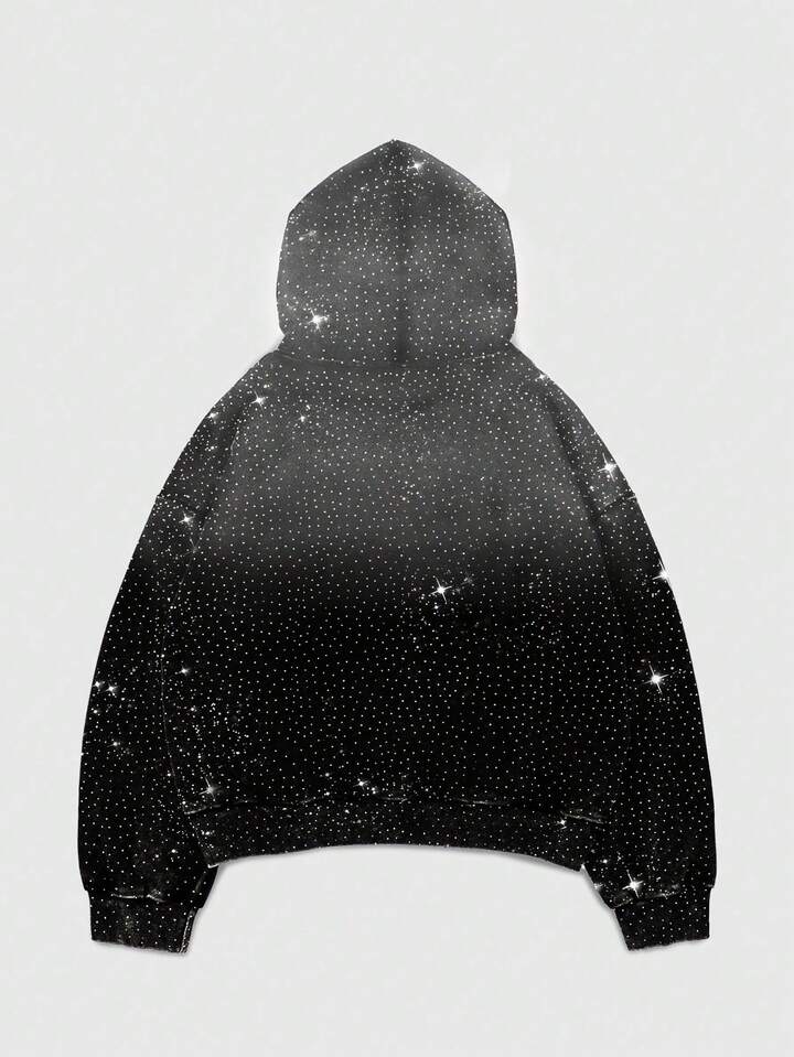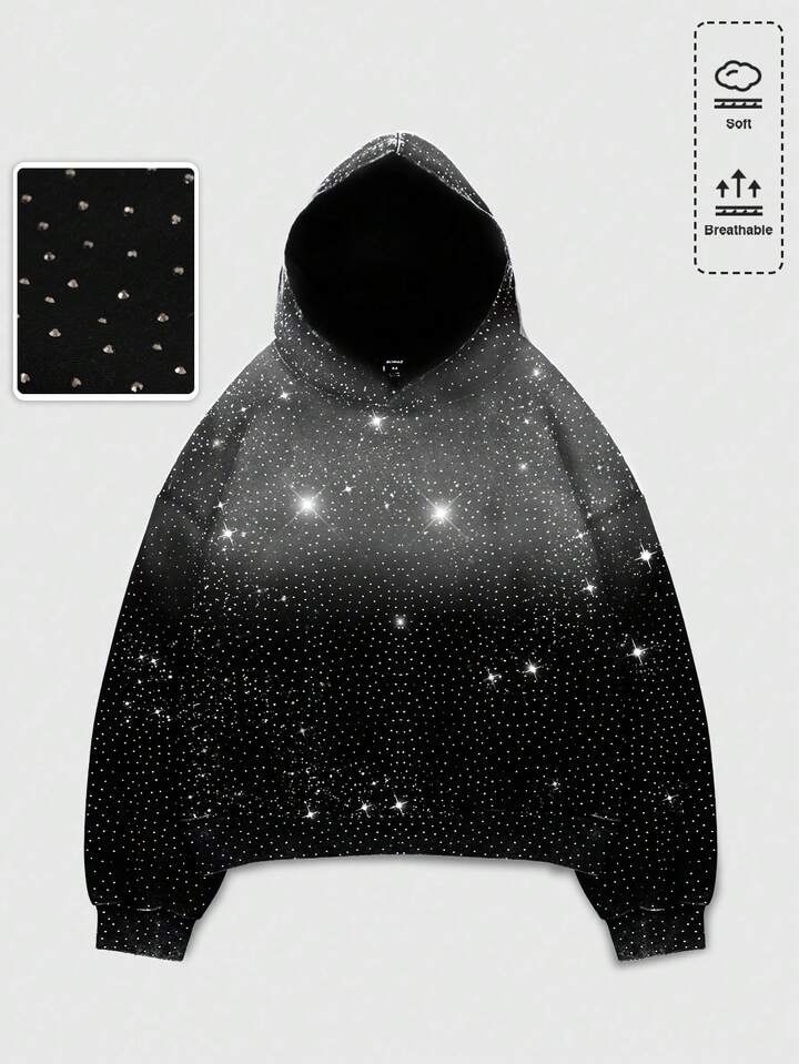 Street Life Men's Oversized Diamond Print Loose Cropped Hoodie, Streetwear