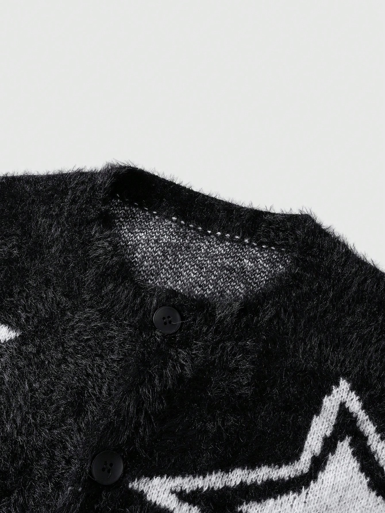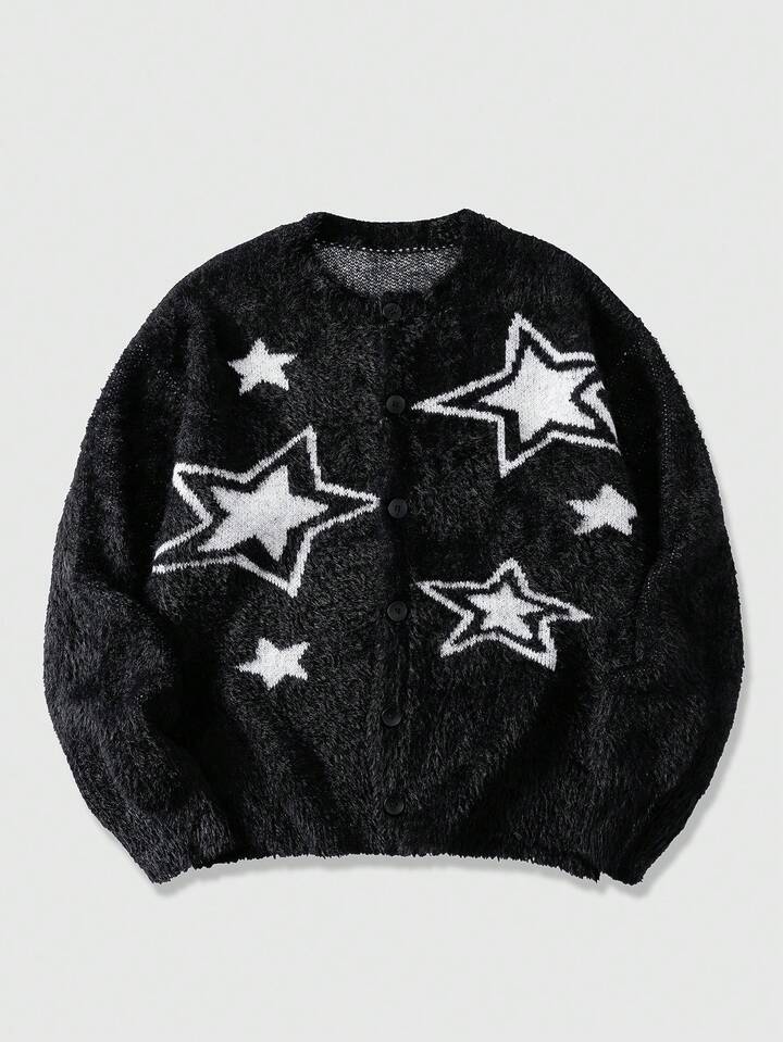 Street Life Men's Pentagram Pattern Long Sleeve Single-Breasted Casual Knit Cardigan, Autumn/Winter