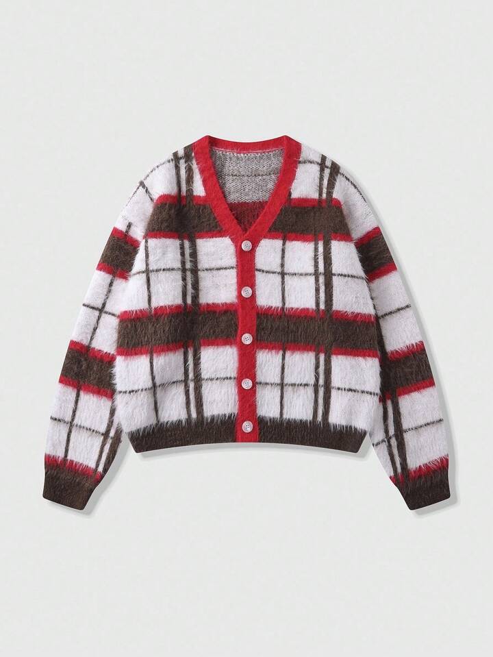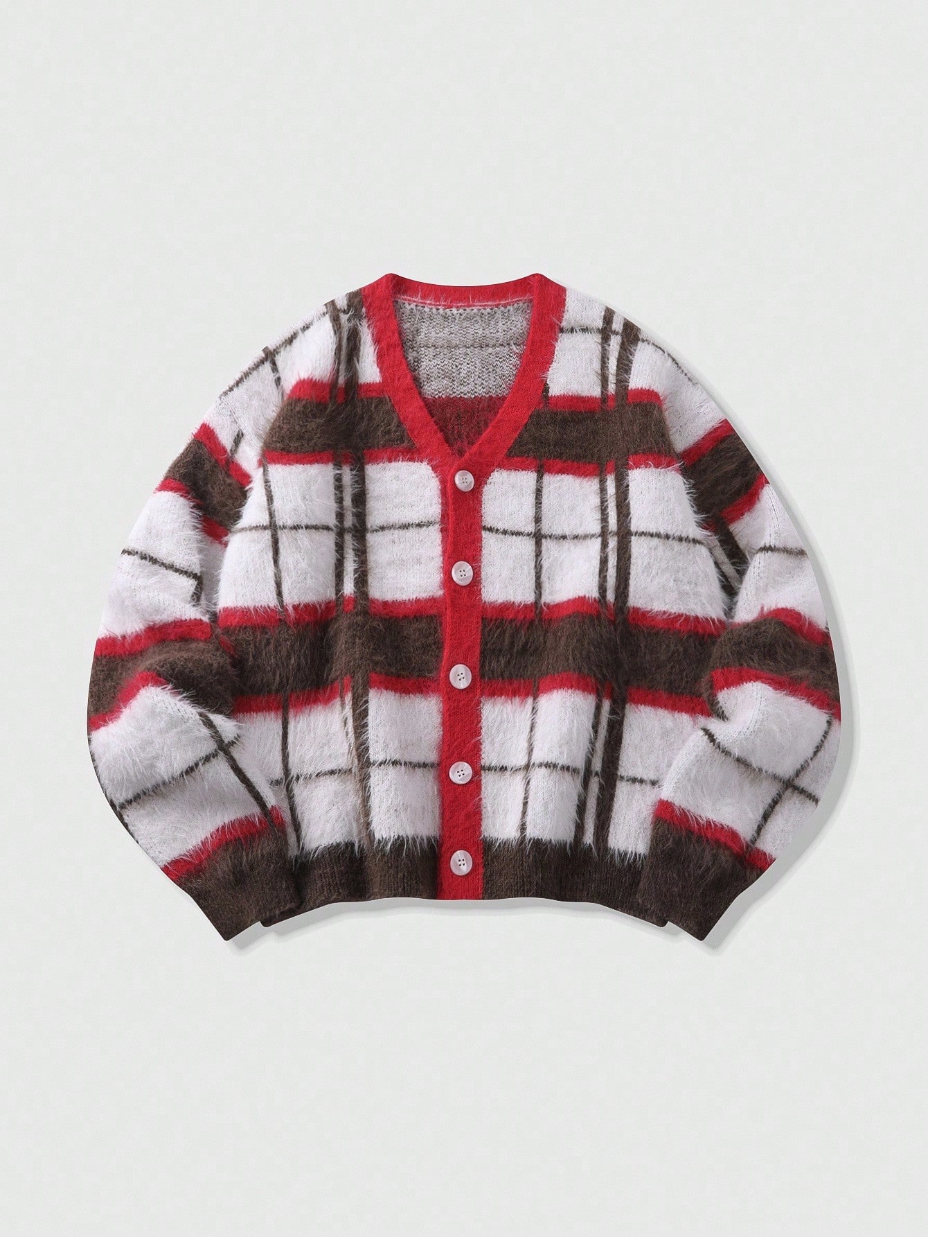 Street Life Men's Plaid Button Up Cardigan, Loose Cropped Style, Fall Winter