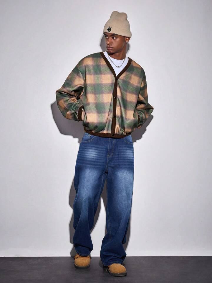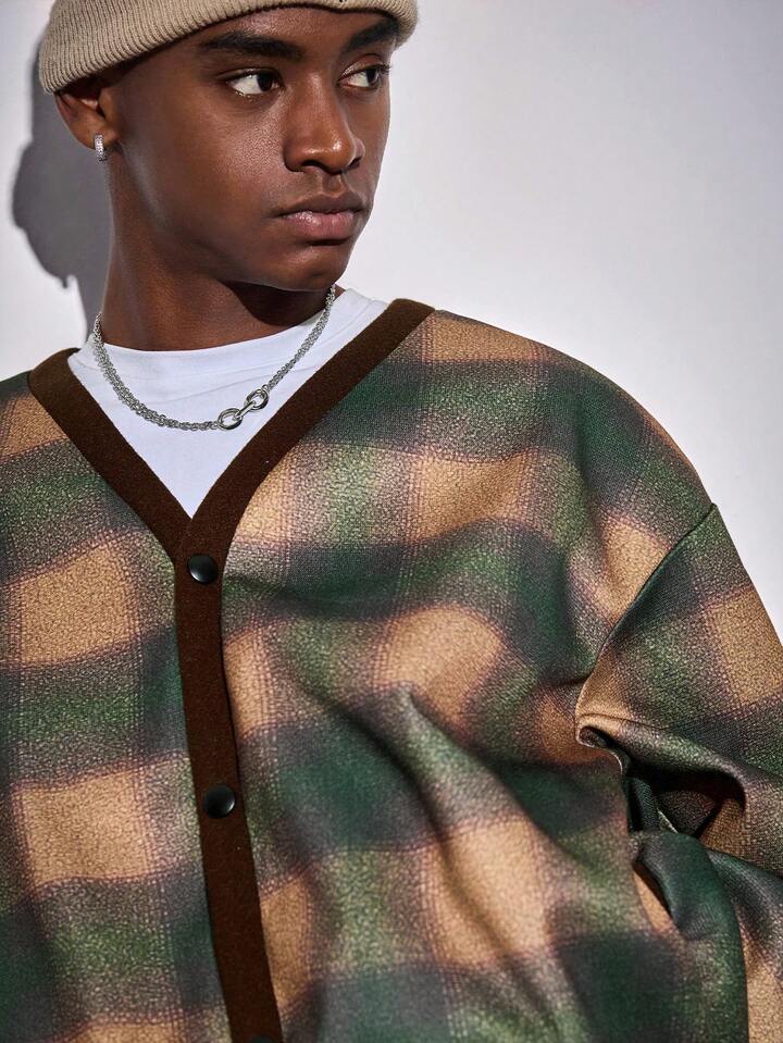 Street Life Men's Plaid Drop Shoulder Long Sleeve Single-Breasted Casual Jacket, Autumn/Winter