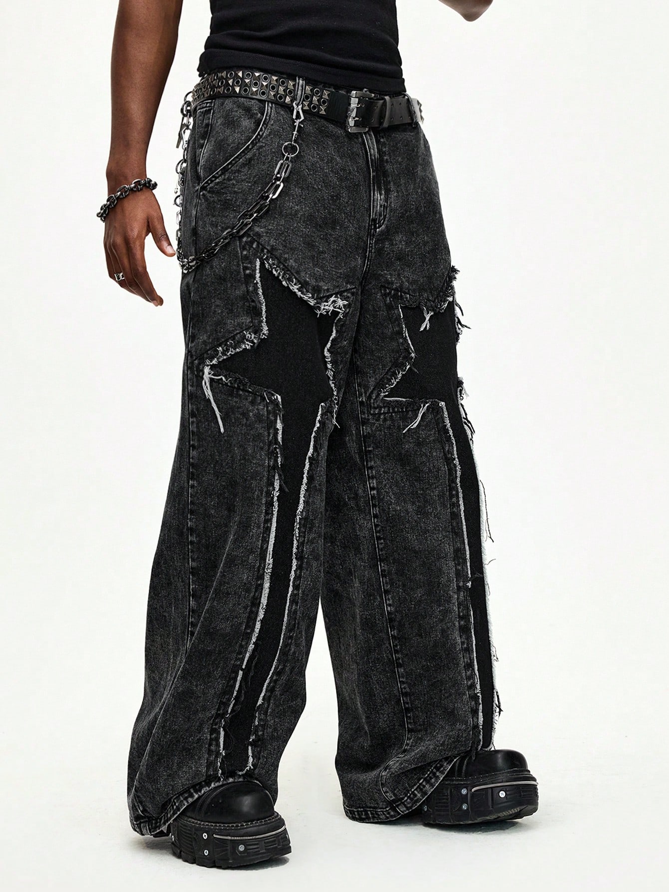 Street Life Men's Pocket Frayed Hem Fashionable Versatile Casual Wide Leg Jeans