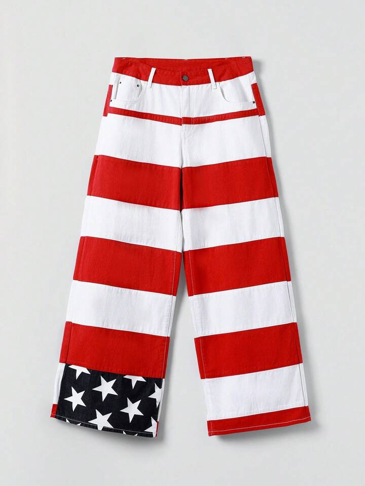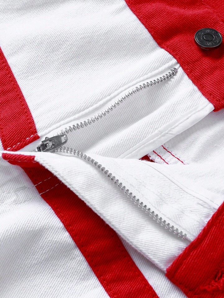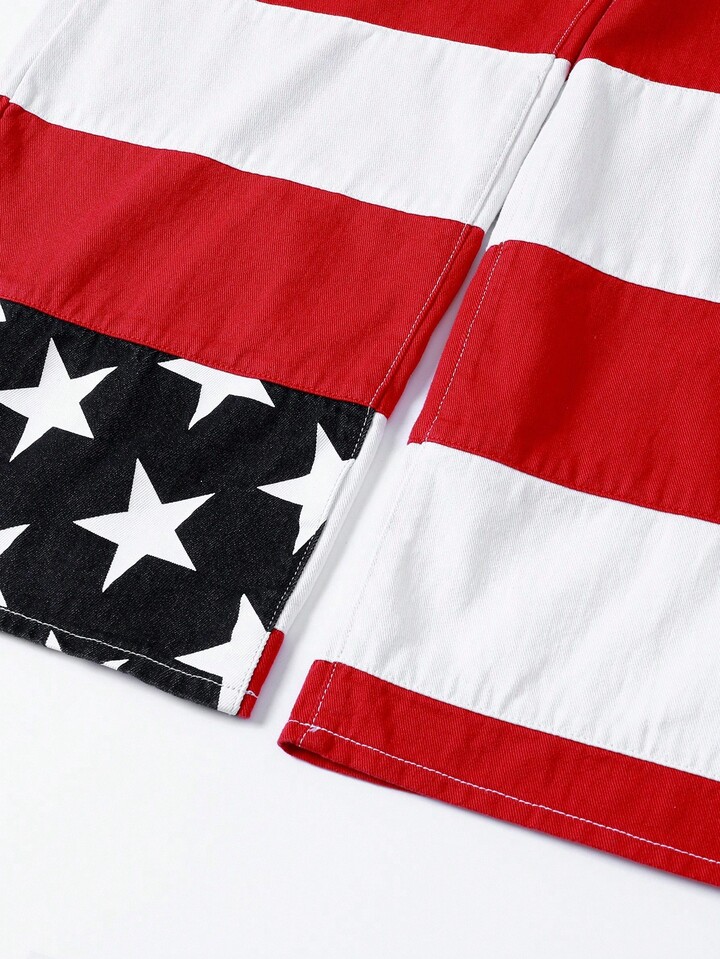 Street Life Men's Pocket Loose Fit Casual Jeans With US Flag Pattern