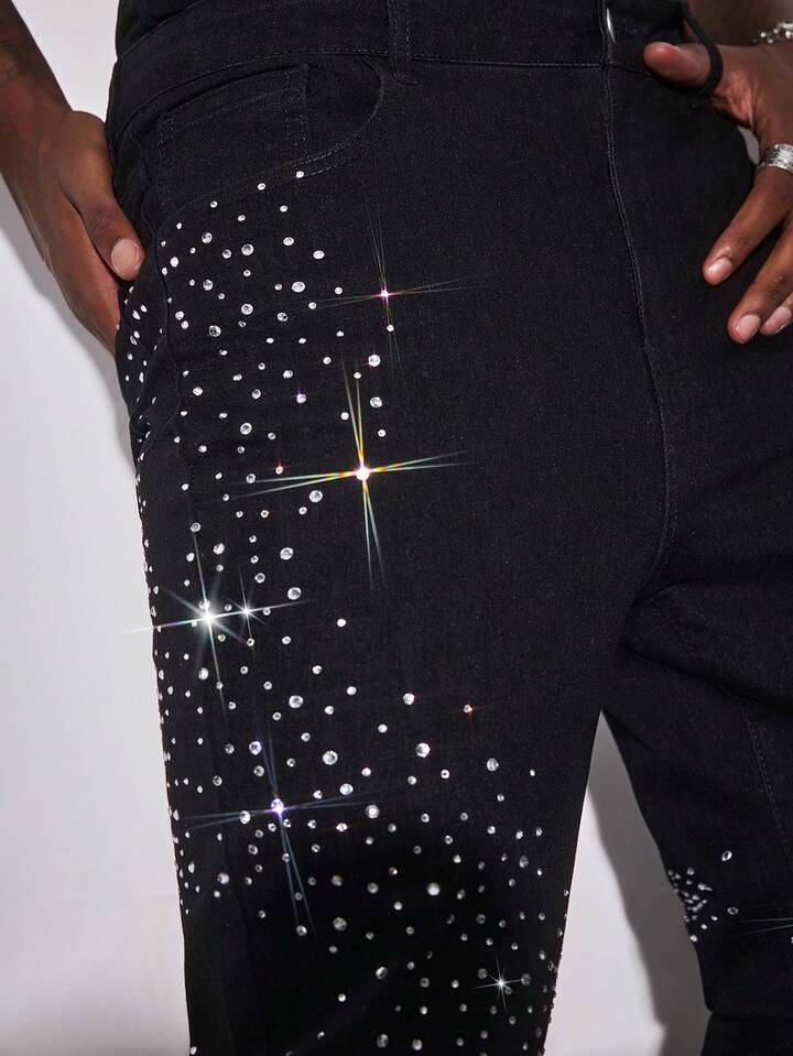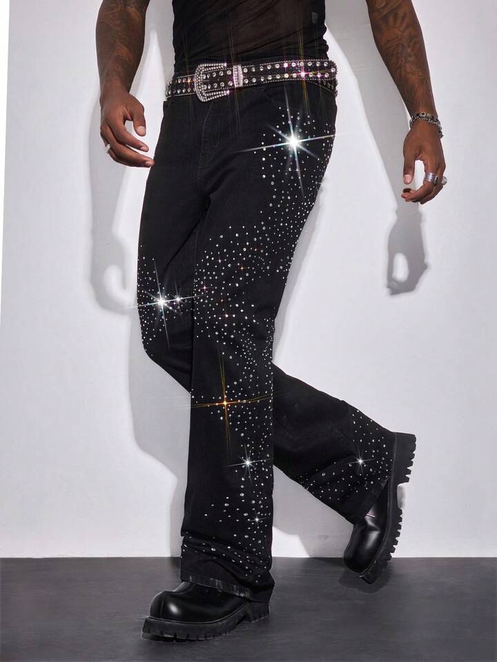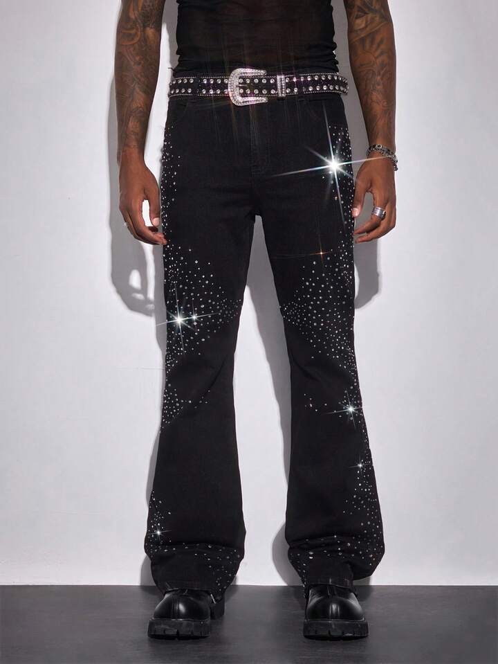 Street Life Men's Pocket Rhinestone Embellished Casual Flare Leg Jeans