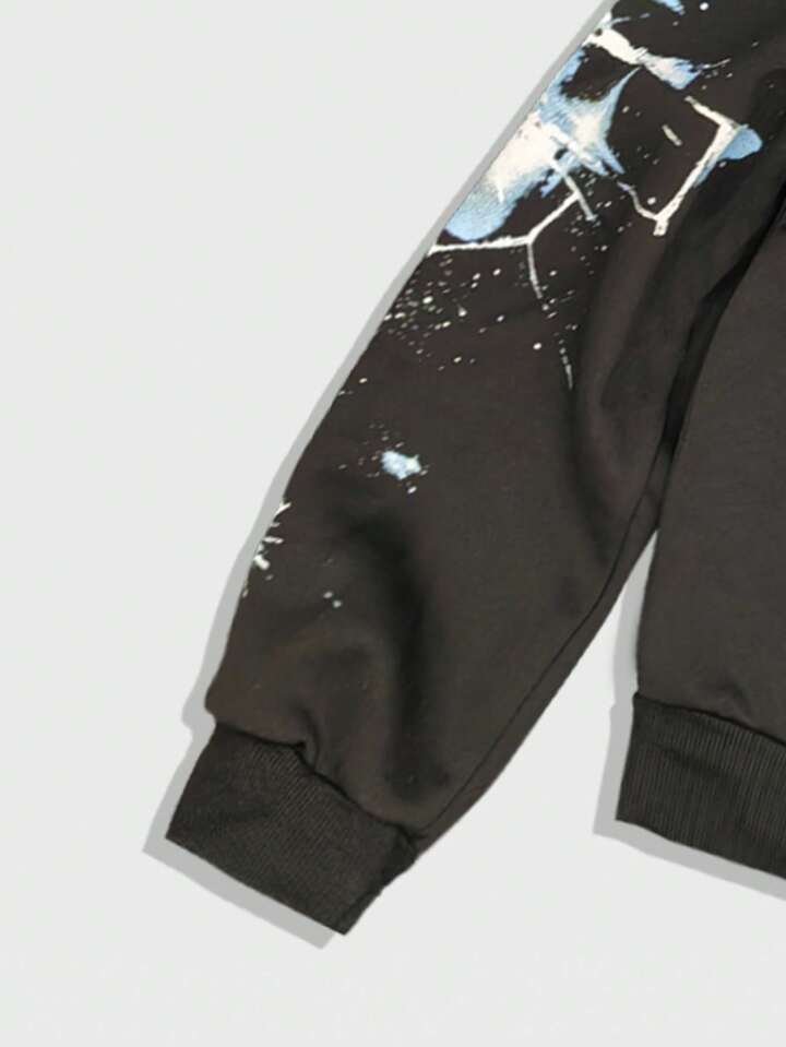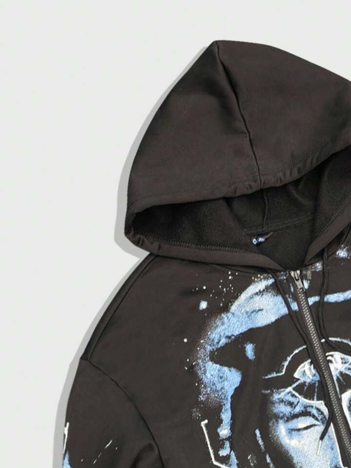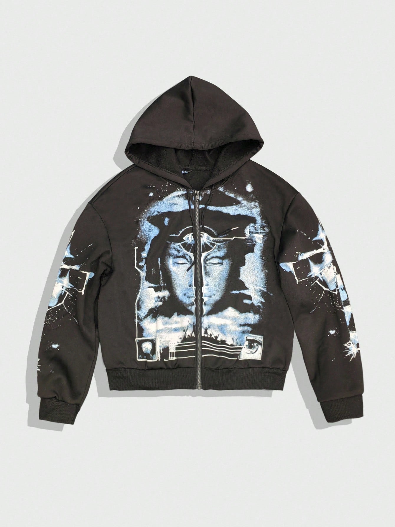 Street Life Men's Portrait Print Zip-Up Casual Long Sleeve Sweatshirt
