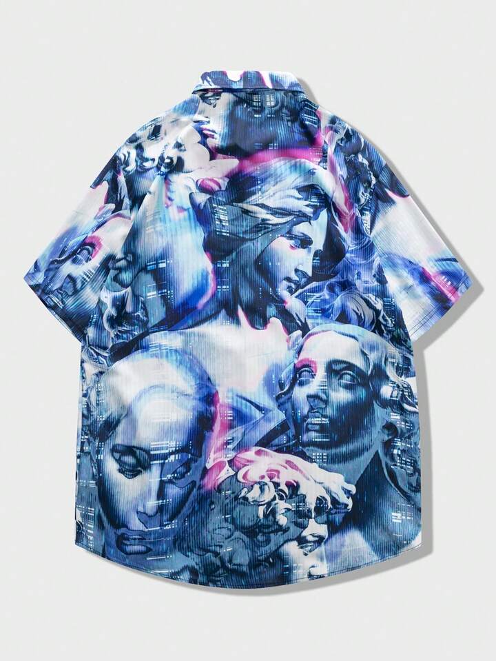 Street Life Men's Portrait Printed Short Sleeve Shirt