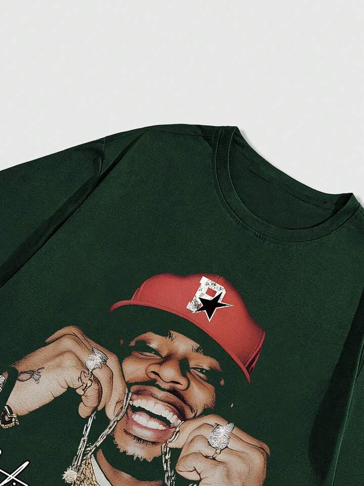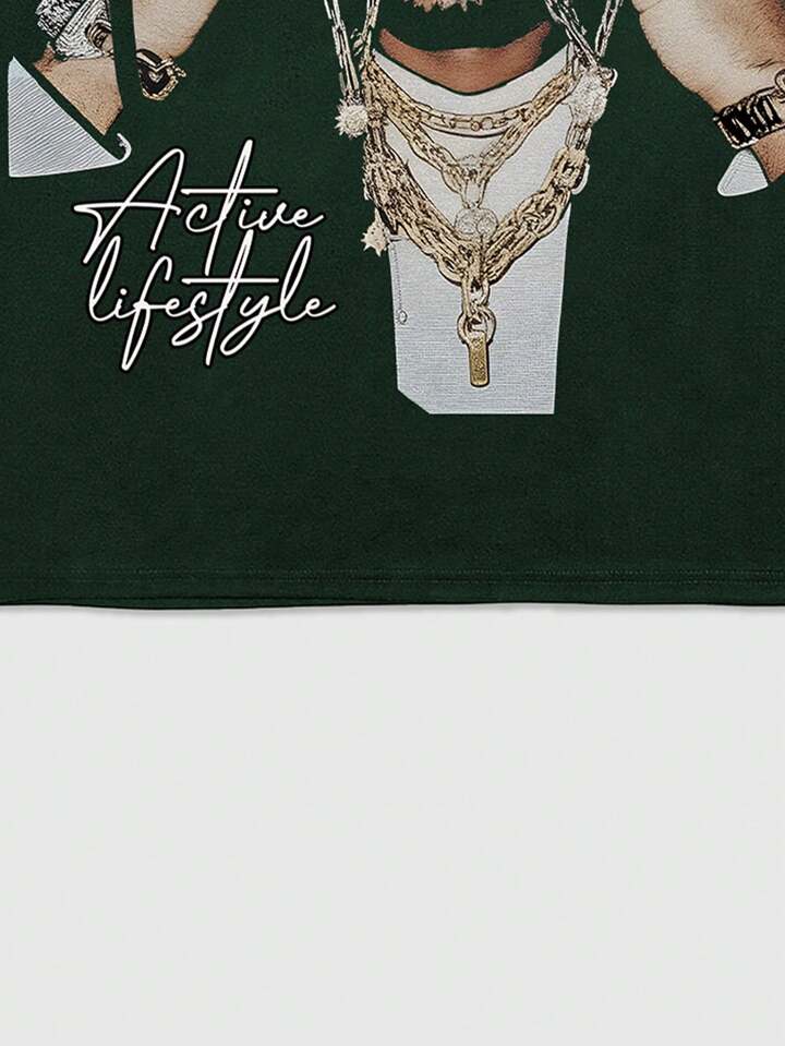 Street Life Men's Portrait Printed Short Sleeve T-Shirt, Casual For Spring And Summer Wear, School