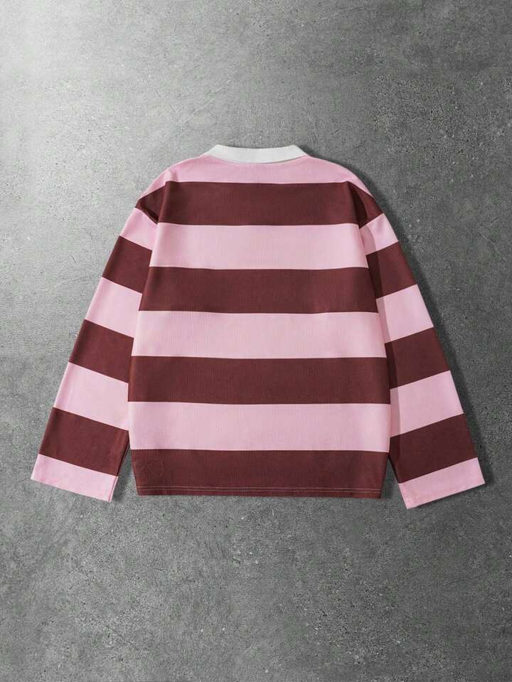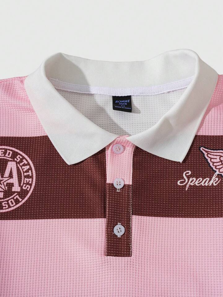 Street Life Men's Preppy Striped Letter Print Polo Collar Long Sleeve T-Shirt, Autumn