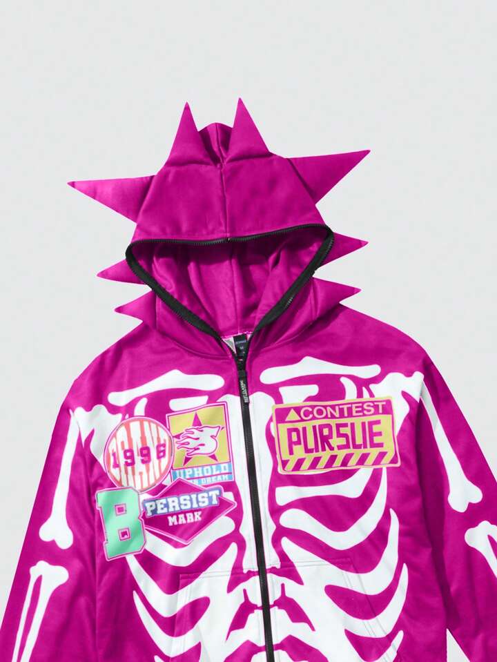 Street Life Men's Printed Front Zip Long Sleeve Hoodie, Casual Daily Wear