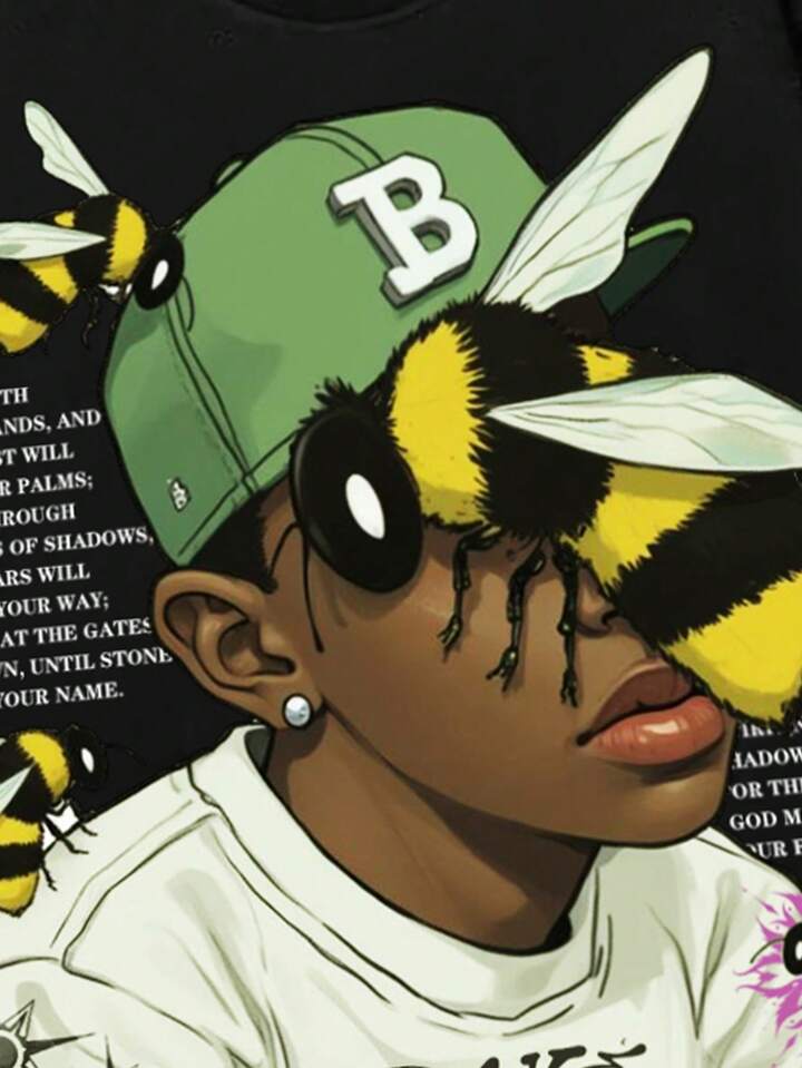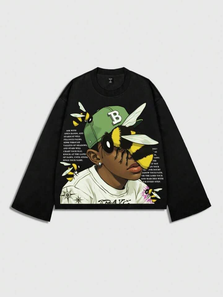 Street Life Men's Printed Long Sleeve T-Shirt, Loose Cropped Fit