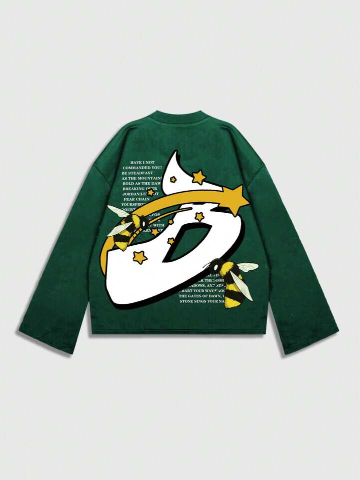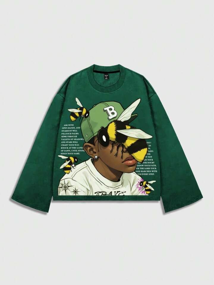 Street Life Men's Printed Long Sleeve T-Shirt, Loose Cropped Fit
