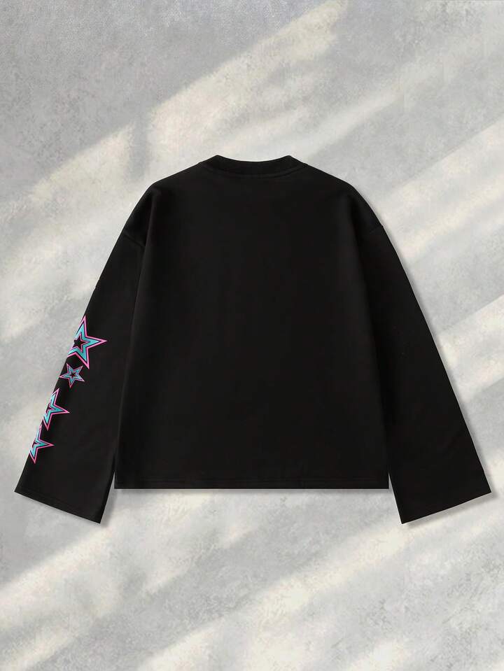Street Life Men's Printed Long Sleeve T-Shirt, Loose Cropped Fit