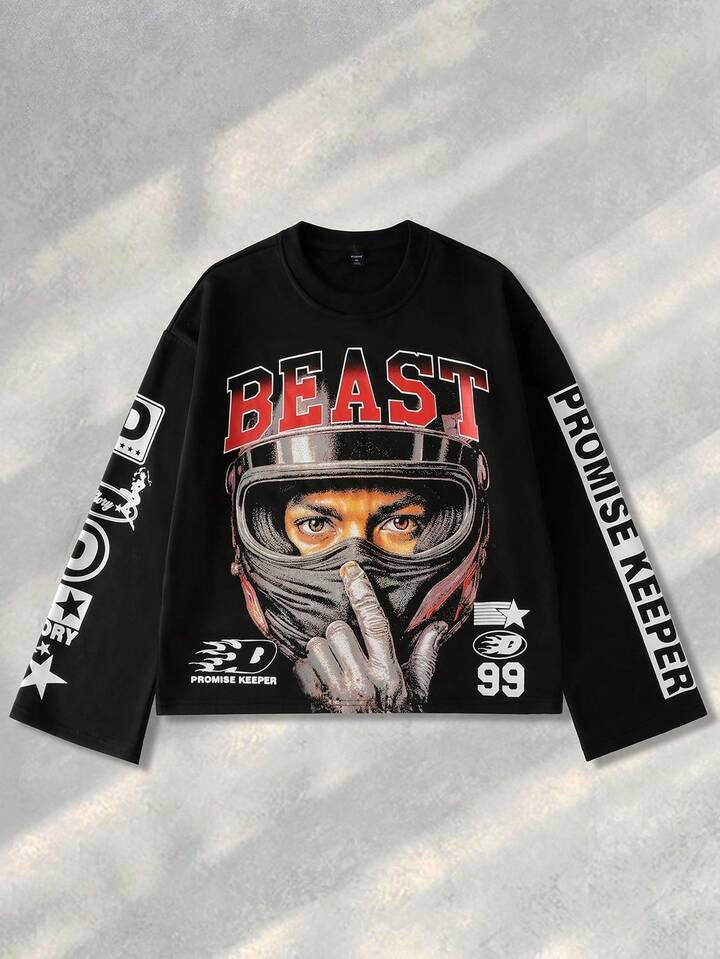 Street Life Men's Printed Pullover Hoodie, Retro Street Style