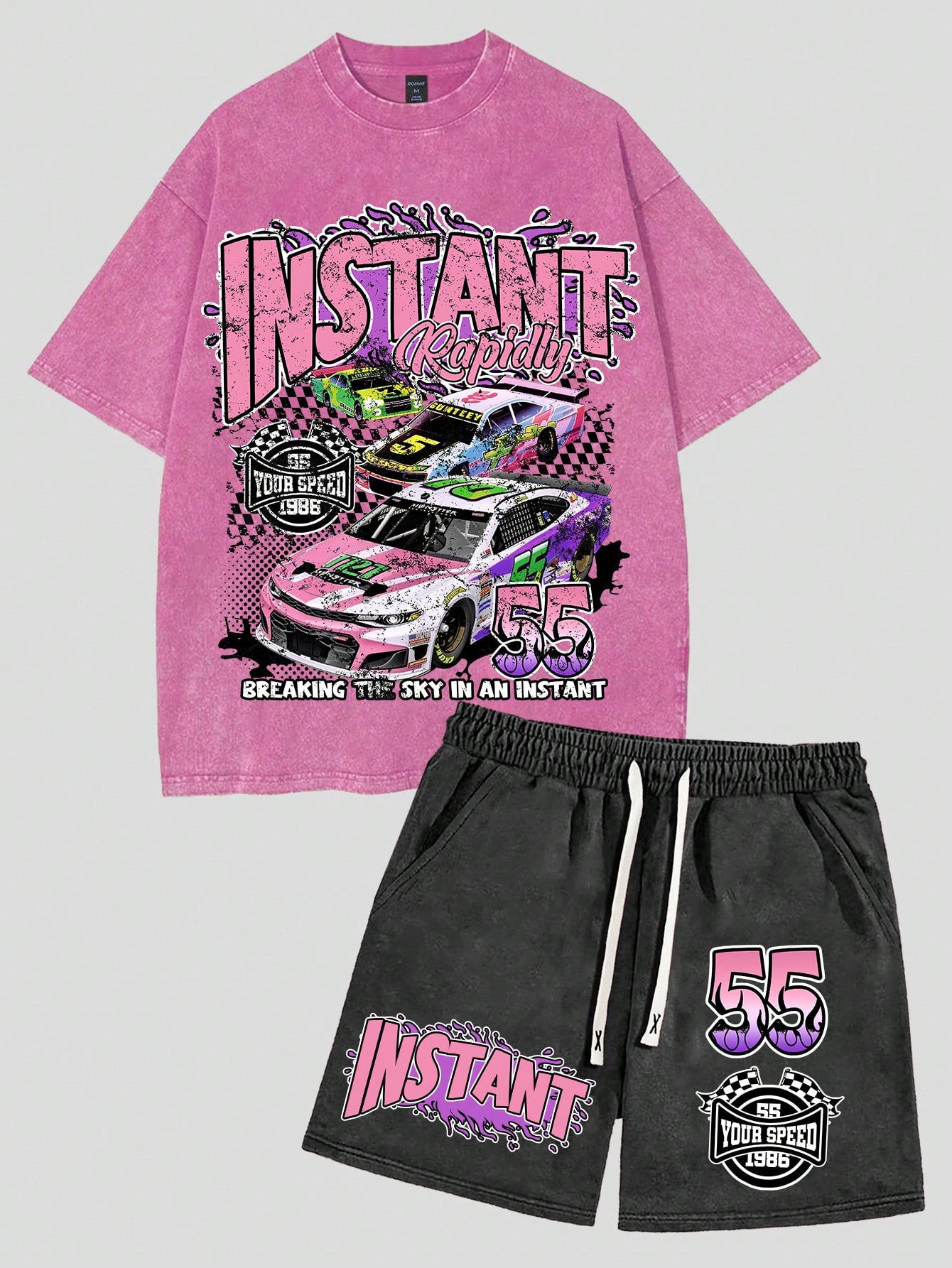 Street Life Men's Race Car Printed Washed Vintage Style Set, Street Wear