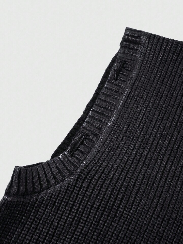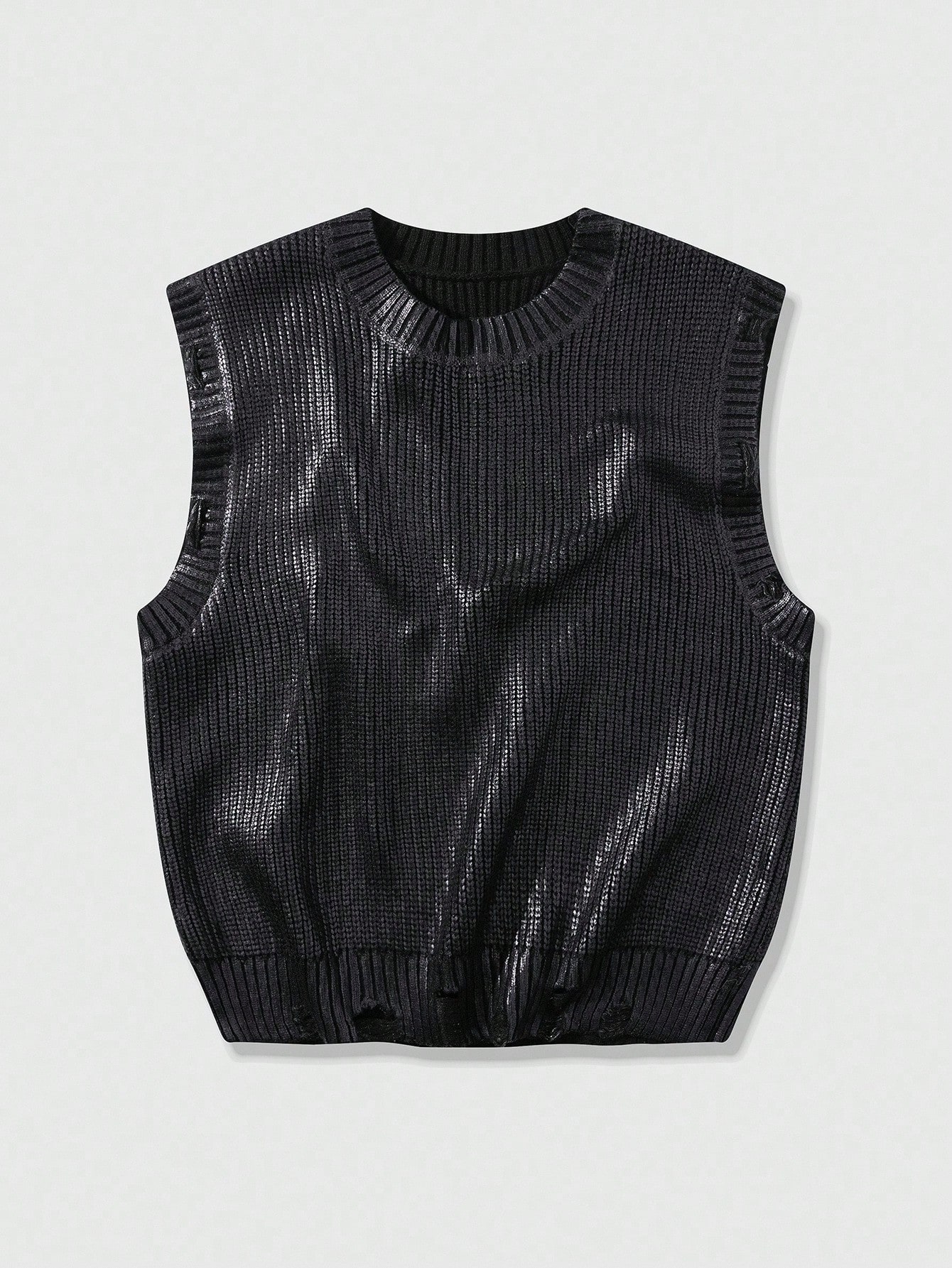 Street Life Men's Round Neck Foil Print Casual Versatile Knit Vest, Fashionable For Autumn