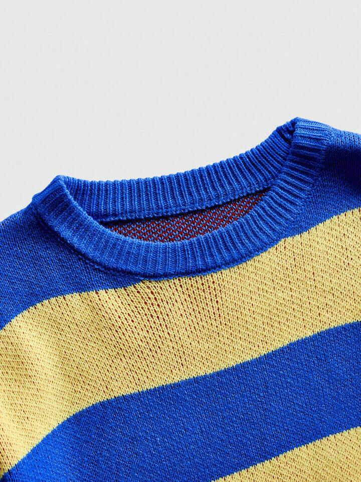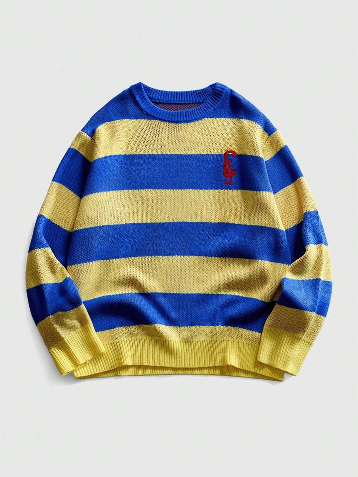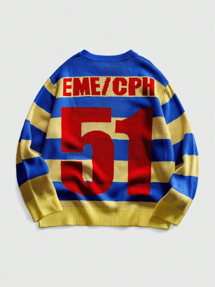 Street Life Men's Round Neck Numeric Striped Knit Sweater, Street Fashion