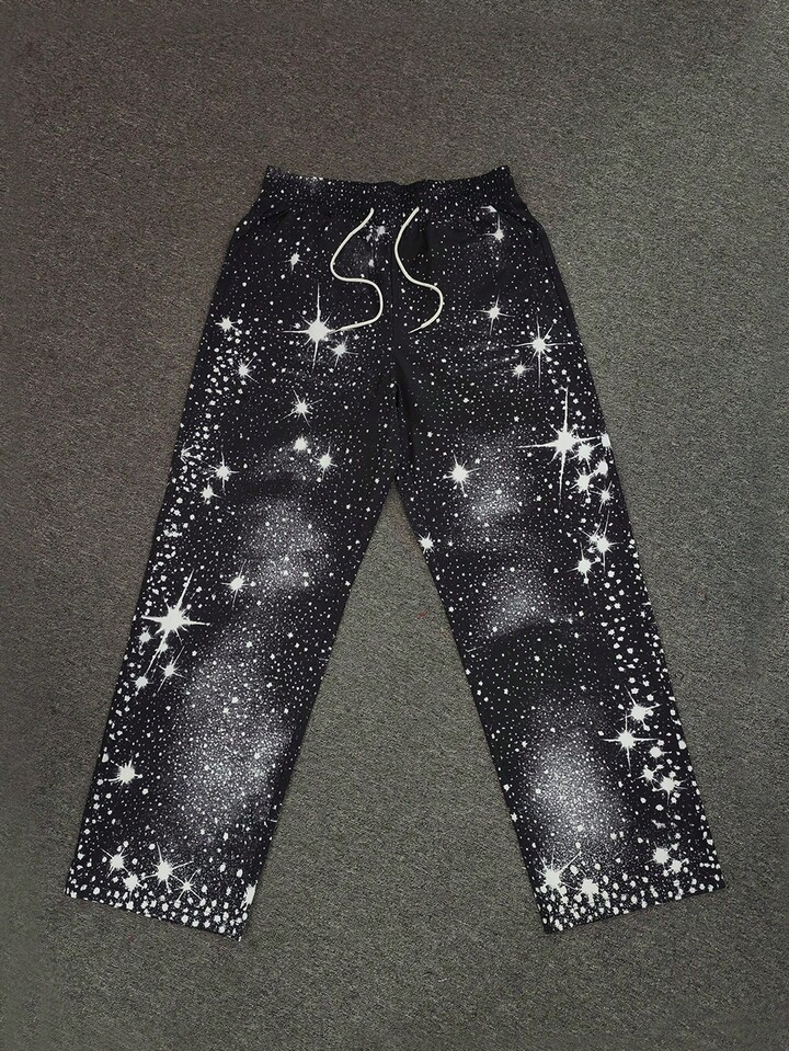Street Life Men's Shiny Graphic Print Drawstring Waist Loose Wide Leg Pants