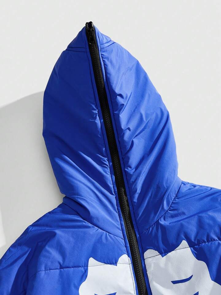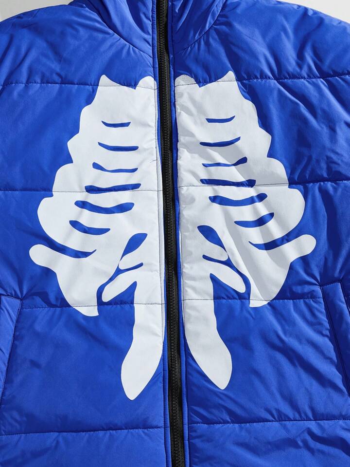 Street Life Men's Skeleton Print Long Sleeve Casual Loose Hooded Padded Coat, Winter, Halloween